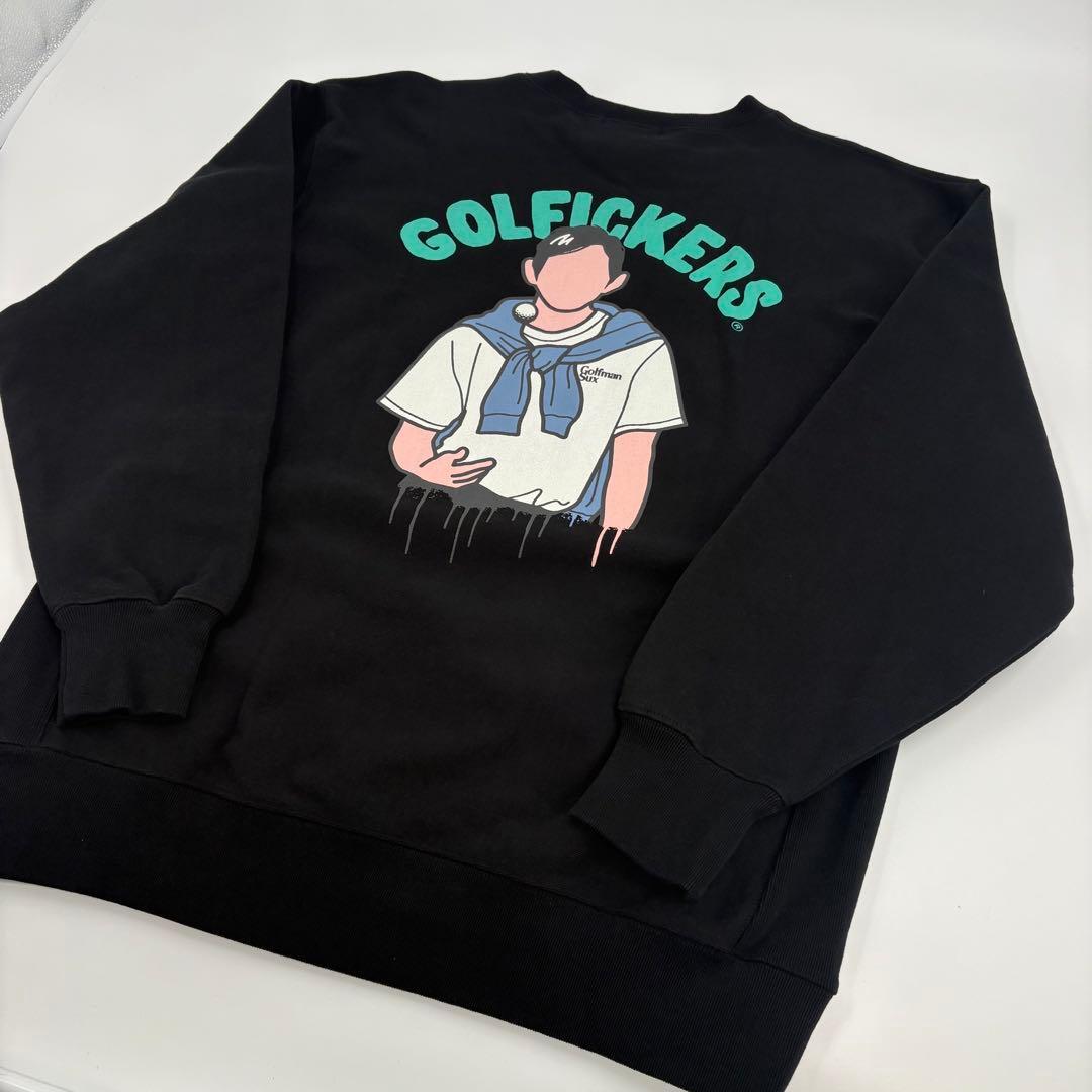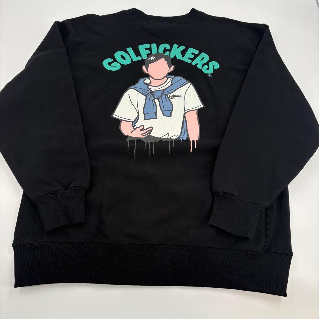 GOLFICKERSのロゴと個性的なグラフィックがプリントされたクルーネックスウェットです。