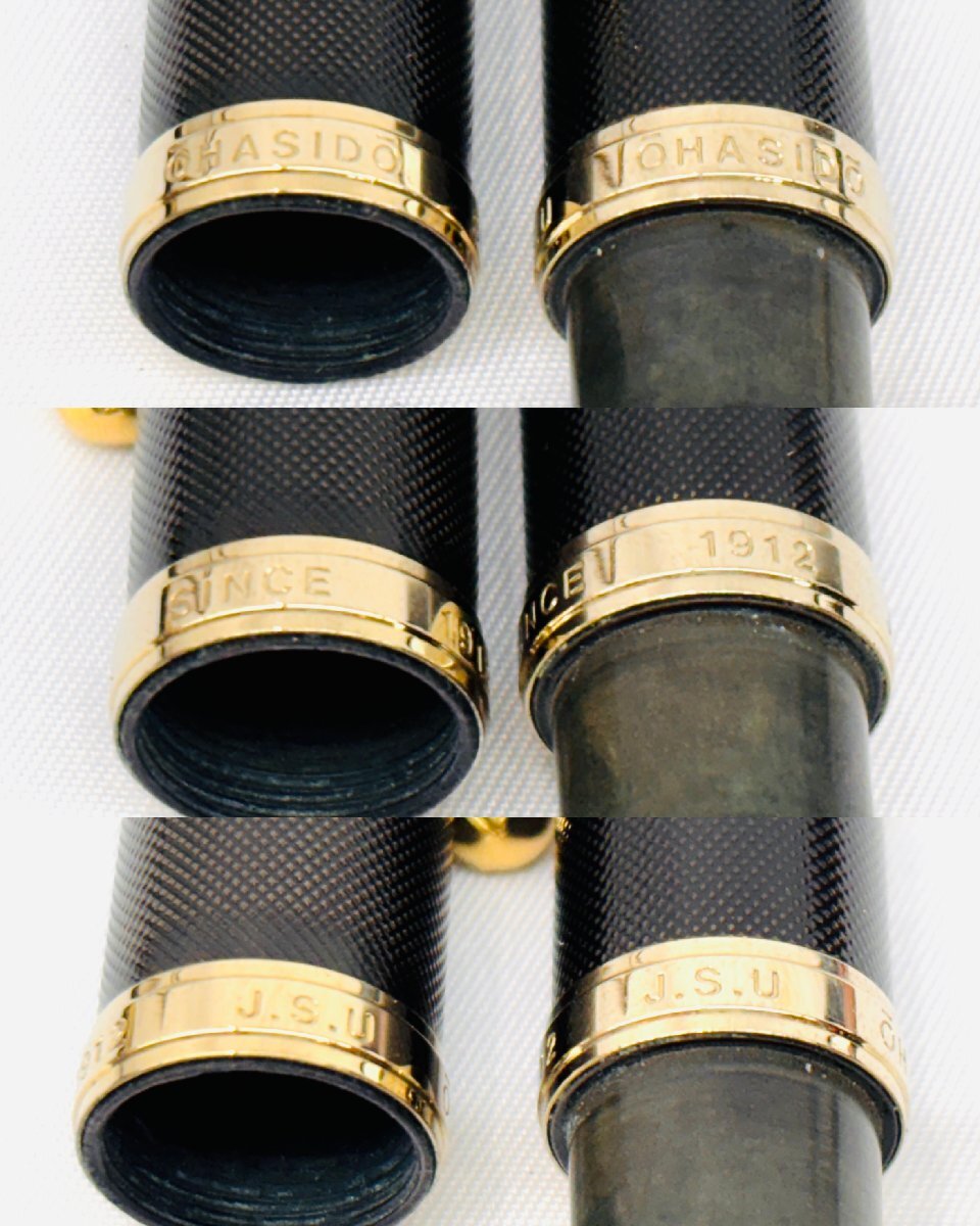 | こちらの商品は在庫管理の都合上、手渡し不可・配送対応のみとなります。 メーカー・・・大橋堂 OHASIDO サイズ・・・長さ:約13.5cm、直径:約1.2cm 色・・・ 黒/ゴールド 系 コメント・・・インク切れに付き筆記は未確認となります。やや小傷等の使用感がありますが、全体的には綺麗な状態です。 画像よりご判断ください。 すり替え等防止の為ノークレームノーリターンでお願いいたします。 付属品・・・画像の物が全てです。 ※画像は撮影機器や閲覧機器により実際の色味と多少異なる場合がございます。 ※1枚目の画像はメーカーから取り入れたイメージ画像となる場合がございます。 ●●●●●●●●●● 商品番号F205 程度★★★( 2番)★★★ ●●●●●●●●●● 1 美品・・・使用感がほとんどなく美品 2 良品・・・多少キズ等はあるが全体的には良い状態 3 並品・・・キズ等が多々あるが全体的には良い状態 4 並下・・・使用感ありキズ等もある 5 ジャンク品・・・何処かが故障していたり破損していたりする物 ※評価は個人的な主観で判断したものですで目安としてお考え下さい ※個々美的感覚が違いますので見方によっては傷になるものも有ります ●●●●●●●●●● 出品中の商品のご質問はこちらのアドレス宛に下さい tosholtd_big1@yahoo.co.jp システムの都合上、通常出品欄からのご質問には答えられませんのでご了承下さい。 ご質問の場合以下を例にして下さい メールタイトル欄に 質問 と入れてください。 本文に オークションタイトル 質問内容 を明記の上お問い合わせください。 | ||