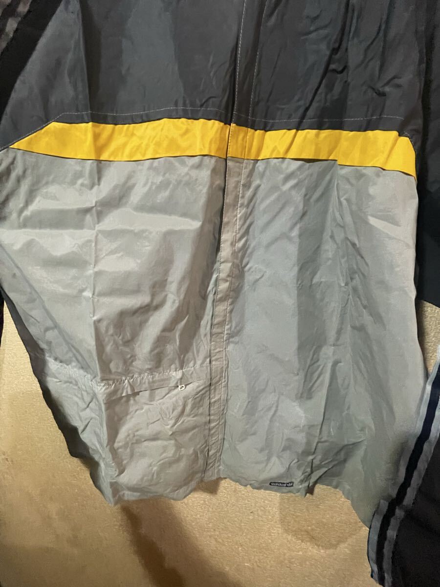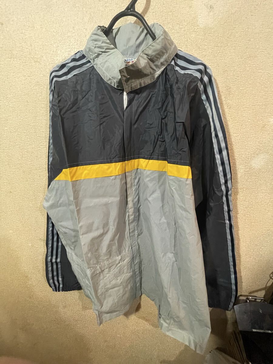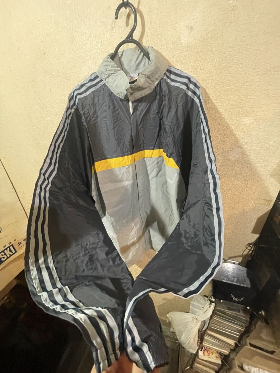 大きいサイズ!3Lぐらい ビンテージ!アディダス ナイロンジャケット 80’ 万国タグ 薄紺系x黄色系xグレー系 オールド&レトロ