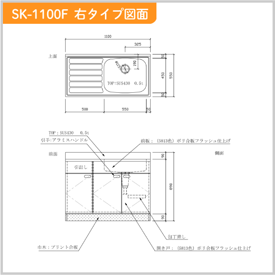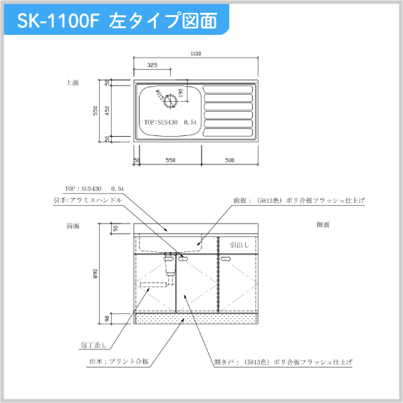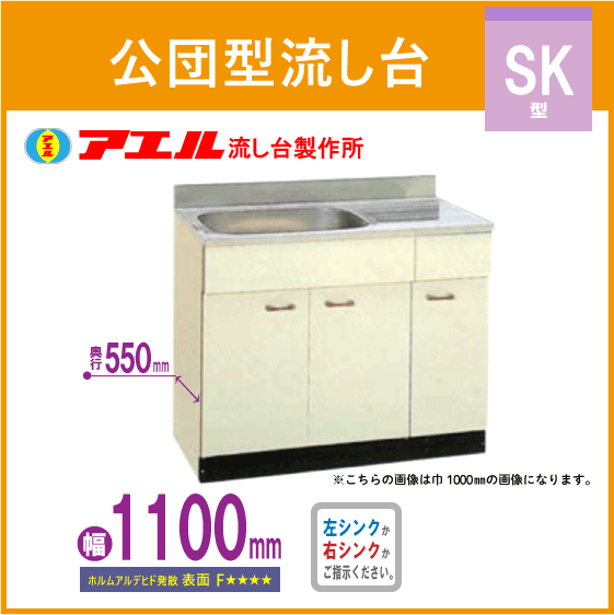 公団流し台 110cm SK型 SK-1100F アエル流し台製作所