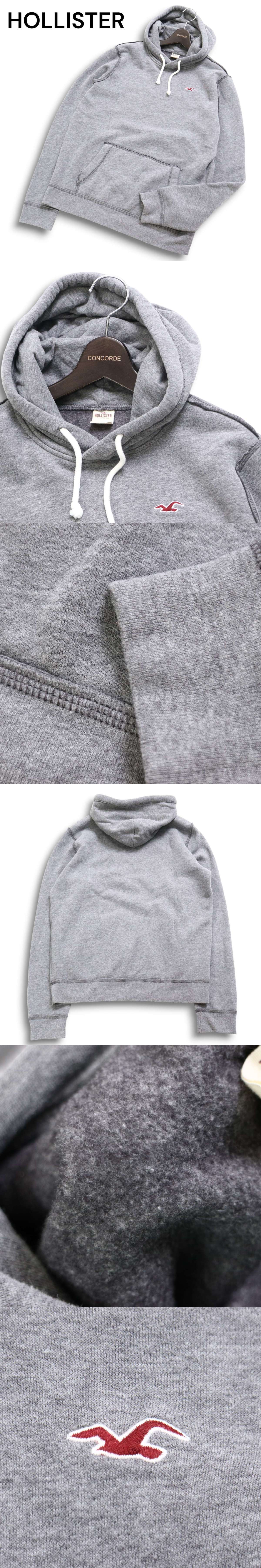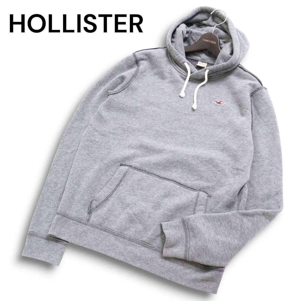 HOLLISTER ホリスター 秋冬 ロゴ刺繍★ 裏起毛 スウェット パーカー プルオーバー フーディー Sz.M メンズ グレー