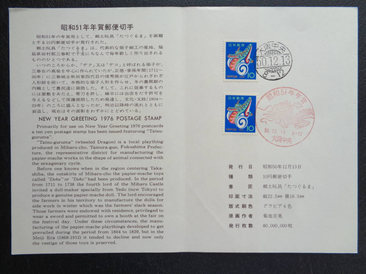 初日印     切手説明書    1975年    昭和51年用年賀切手