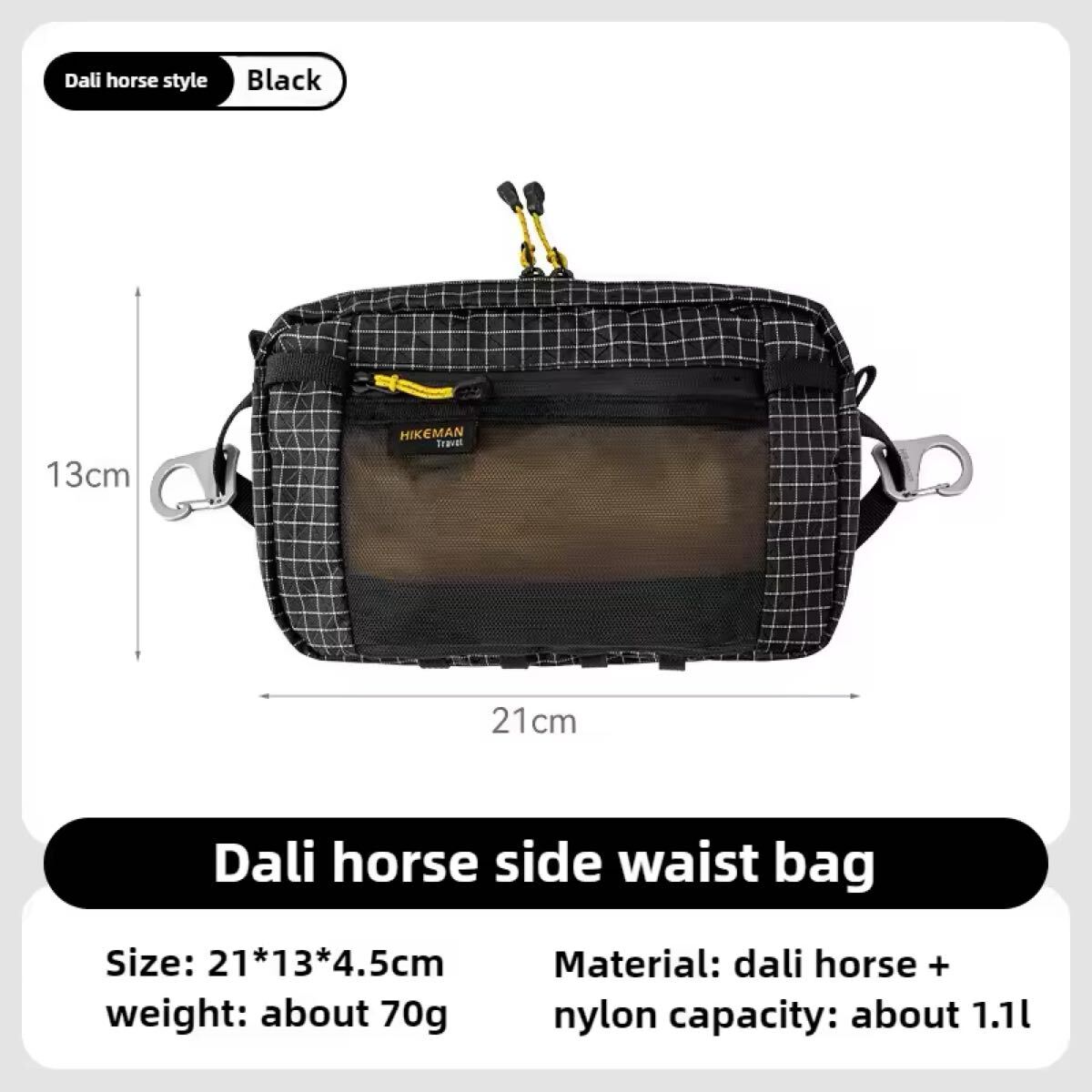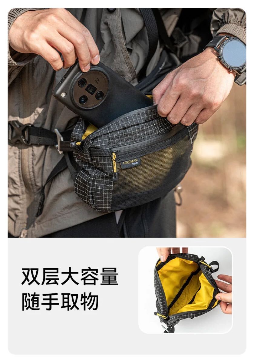 HIKEMAN UL ウエストバッグ ポーチ ファニーパック black サイドウエストバッグ 軽量 小物入れ bag waist bag ウルトラライト 黒 zip
