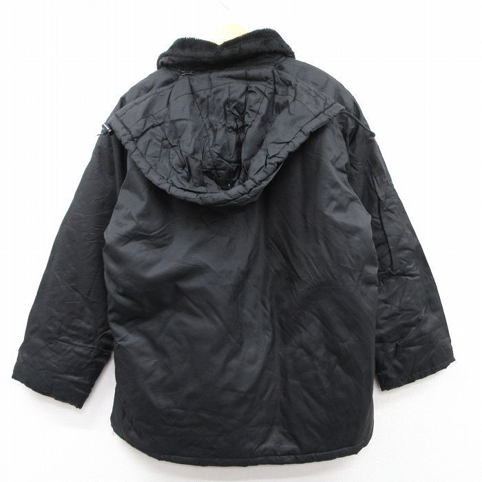 【商品名】 XL★古着 長袖 ナイロン ジャケット メンズ 80年代 80s 襟ボア 大きいサイズ ロング丈 黒