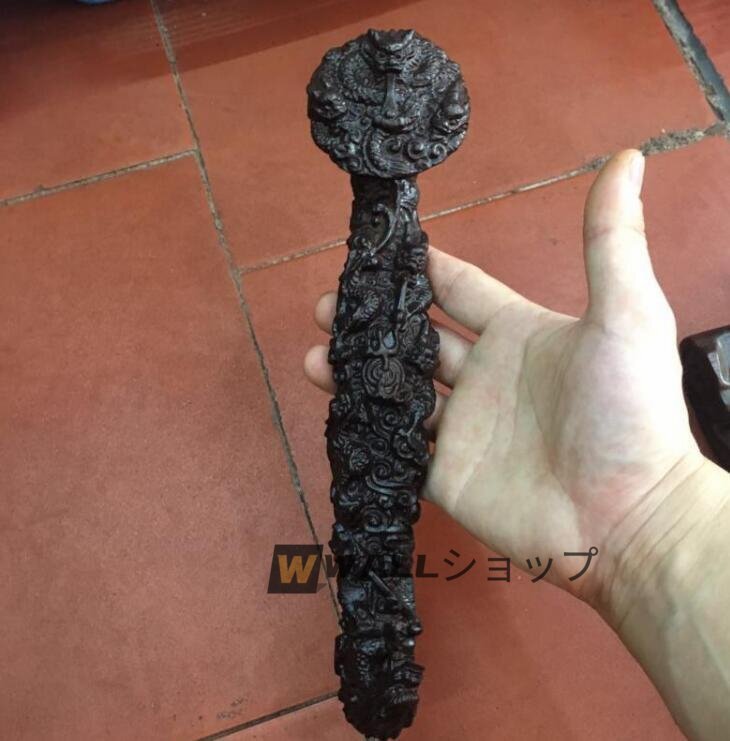 高品質 人気商品★沈香木彫刻独板原木九龍如意赤木置物