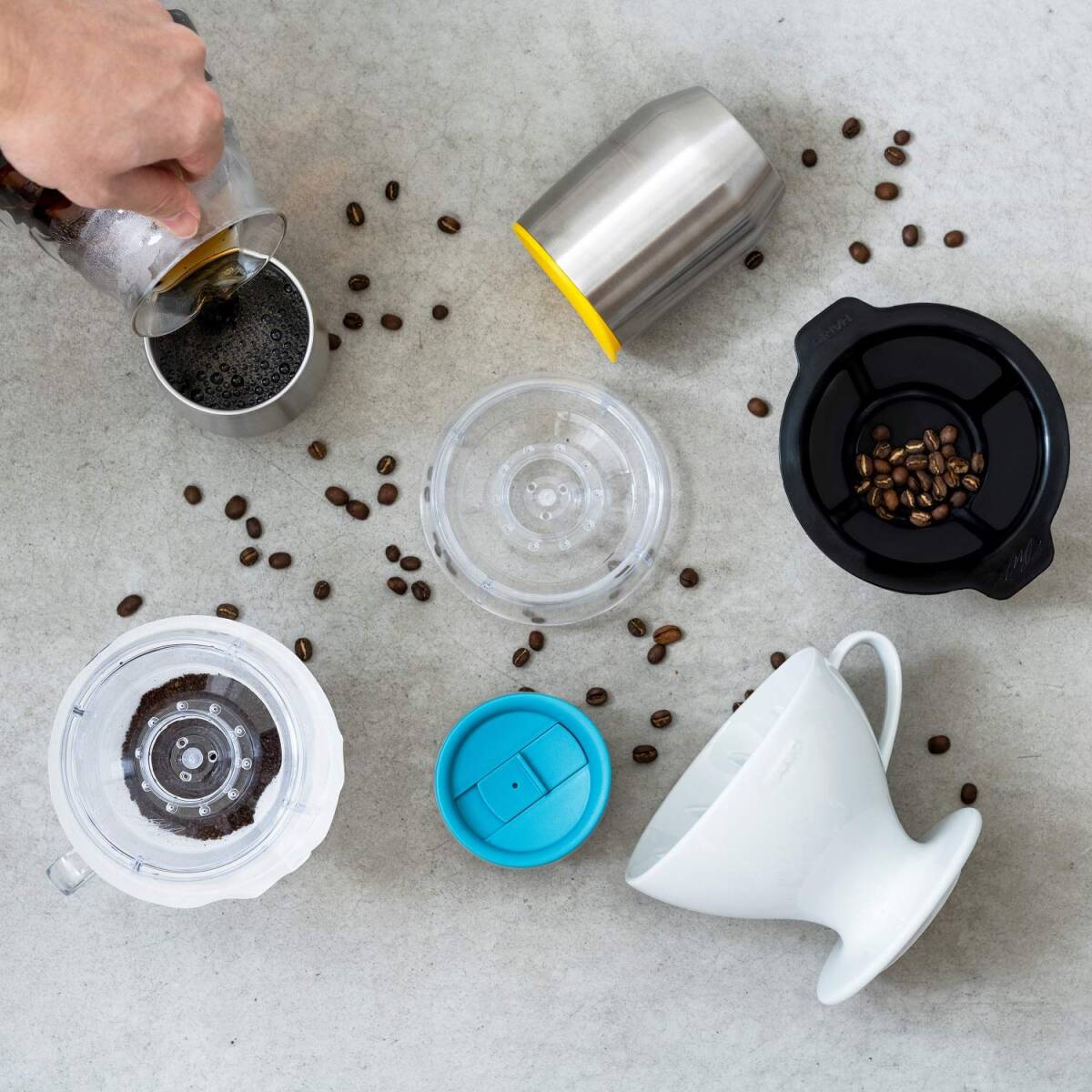 バリスタの淹れるV60クオリティを簡単に誰でも。 細口ケトルがなくてもおいしいコーヒーが作れる。 途中で中央にあふれる設計で、抽出の目安にできる。 2種類の点滴速度で、幅広いレシピを作成できる。