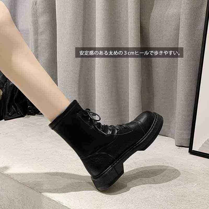 レディース 靴 ブーツ レースアップ 紐 太ヒール ミドル レザー調 ハーフ ローヒール 美脚 35 裏起毛