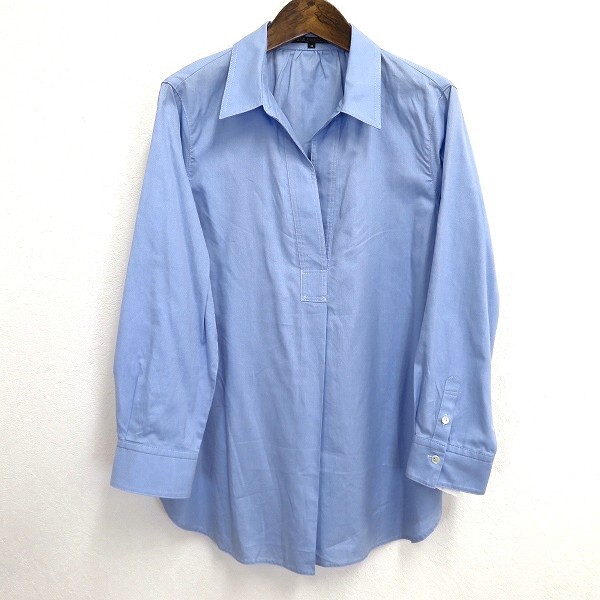 #a 23区 ニジュウサンク 長袖 シャツ ブラウス 40 青系 スキッパーカラー 綿 コットン 100% Lサイズ レディース 886509 k01