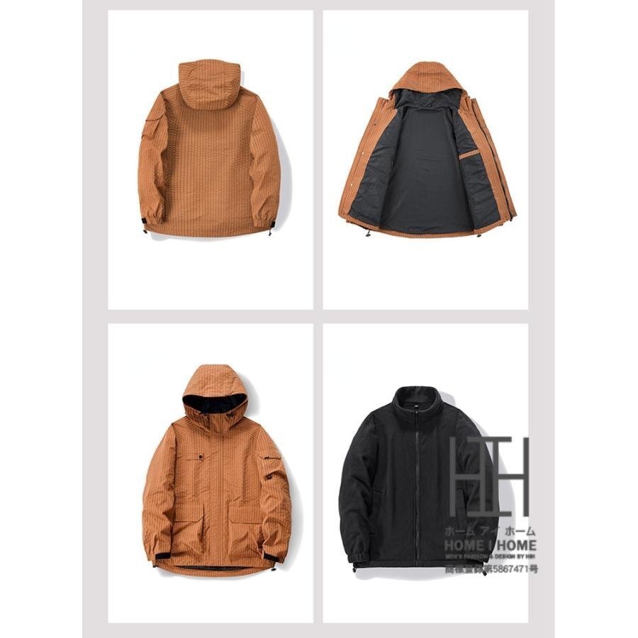 マウンテンパーカー メンズ 登山服 3way ボアライナー付き 取り外し可能 フリースジャケット 裏ボア フード 防風 防寒 おしゃれ チェック柄 秋 秋服 冬 冬服