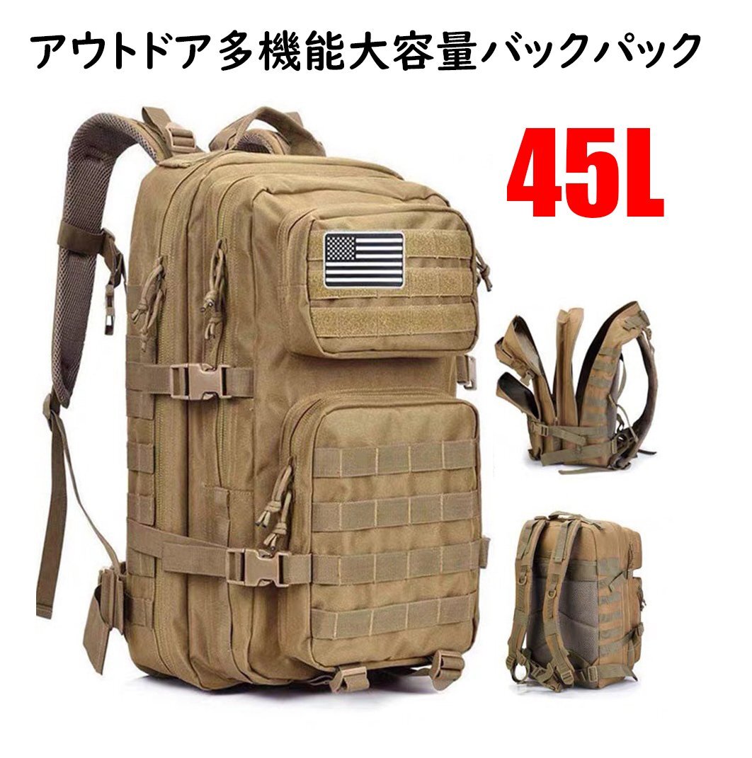 リュック バックパック 45L 大容量 多機能 丈夫 頑丈 通学 登山 旅行 1泊 宿泊 撥水 防災 カーキ hw476.kq