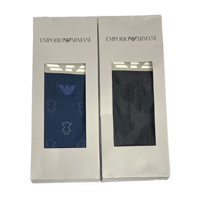 未使用 箱入り エンポリオ アルマーニ 紳士 靴下 ソックス ベア 2足セット ARMANI ブラック 黒 メンズ 【中古】