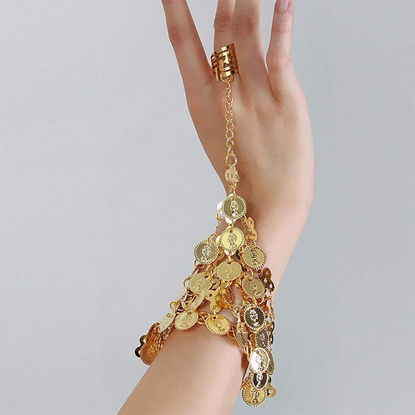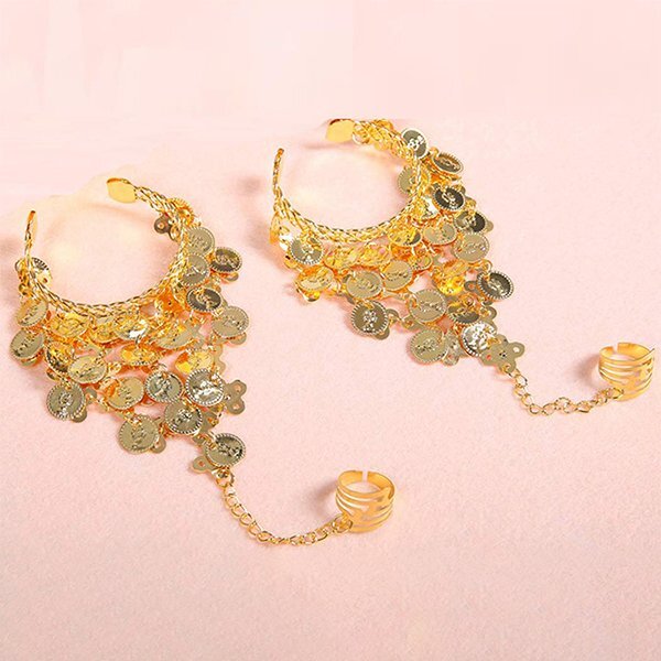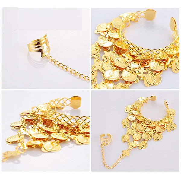 送料無料 ブレスレットリング ゴールド コイン ベリーダンス 2個セット / 両腕 アクセサリー ダンス 衣装 ハロウィン リストバンド 腕輪