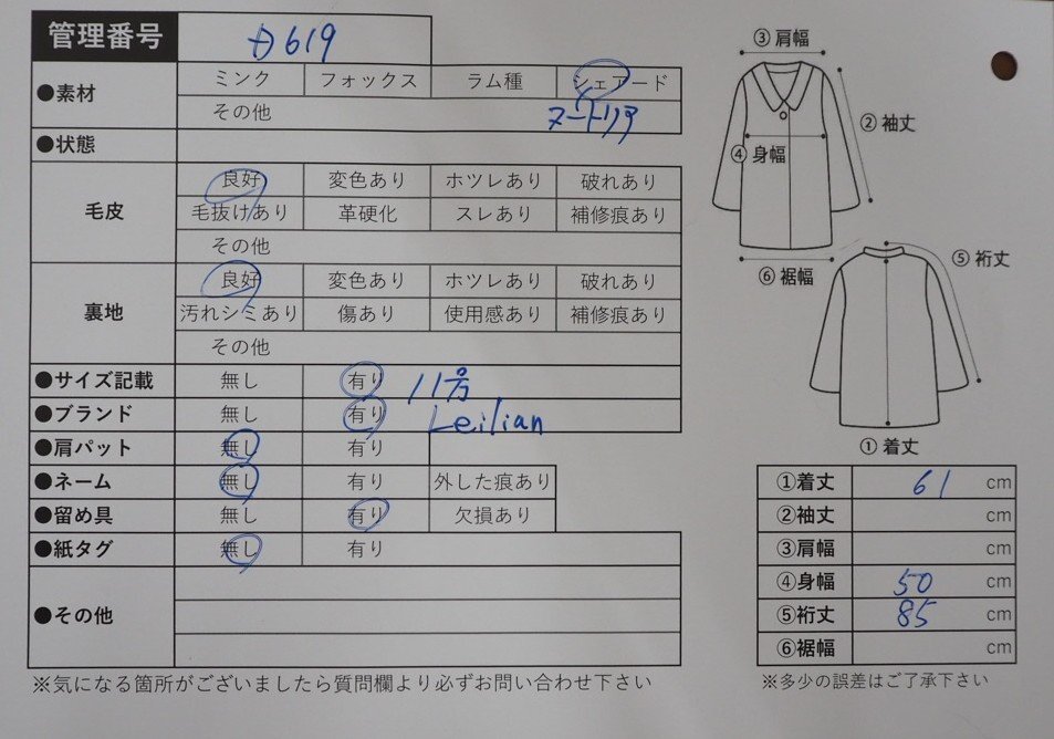高級毛皮【 ¥1000~ / Leilian / 日本製 】 ◆美品 ◆シェアードヌートリア ◆ショートコート 61cm丈 ◆ブラック ◆サイズ 11号 ◆D619