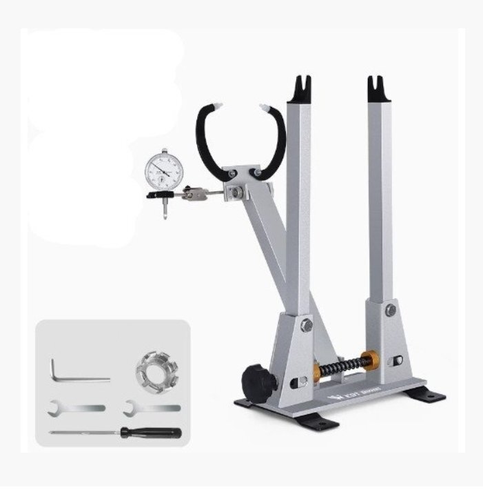 調整機能: 精度の高いダイヤルゲージが装備されており、微調整が簡単に行えます。ホイールの振れを正確に測定し、調整することが可能です。
