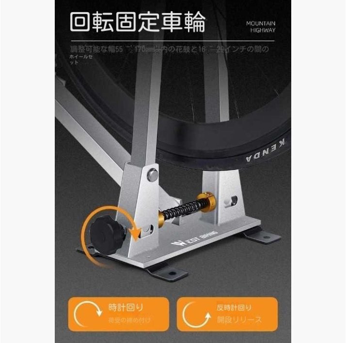 ホイールの対応: 幅広いハブに対応し、55~200mmの調整範囲があります。これにより、16~29インチの自転車ホイールや702Cロードバイクリムに対応しています。