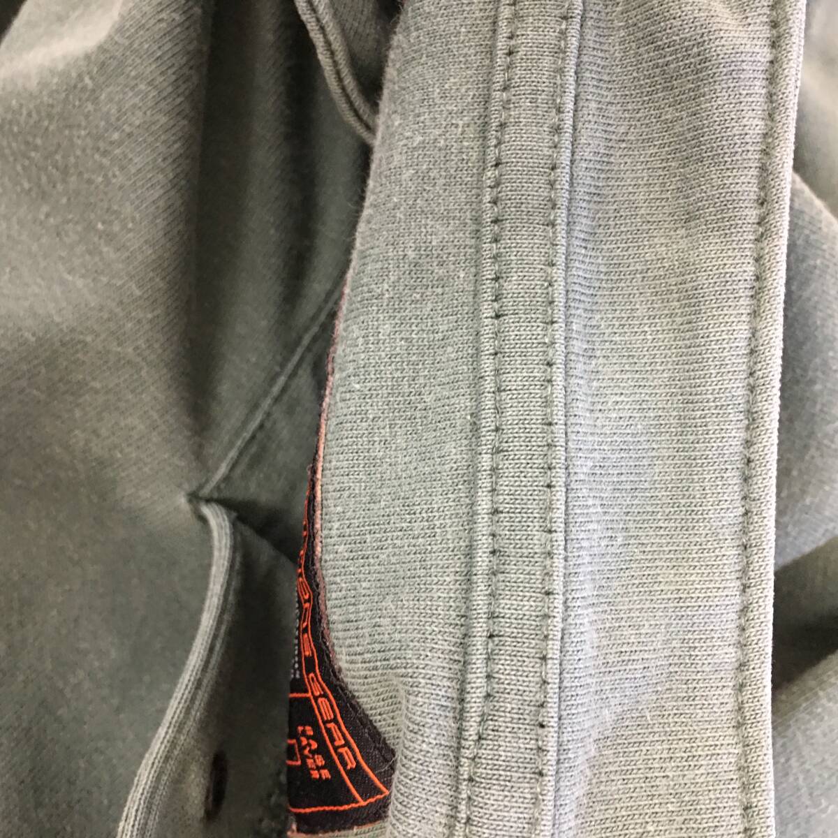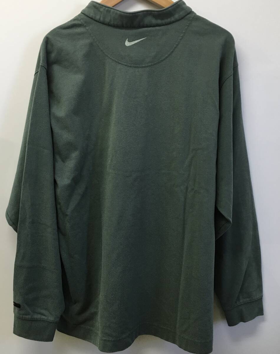 全体的に色褪せ・多少の毛羽立ちが見られます。 NIKEマークに割れ・スレが見られます。 特に目立つ汚れなどはございません。 サイズ:L 着丈約73㎝ 身幅約57㎝ 肩幅約48㎝ 袖丈約62㎝ カラー:グリーン |