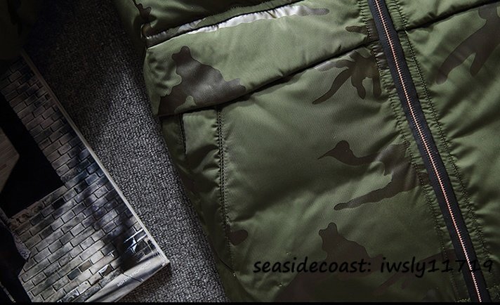 冬新品*メンズ ダウンジャケット 厚手 スキーウェア ダウンコート パーカ ワッペン付き 迷彩柄 ブルゾン アウトドア 防風防寒 ブラック 4XL