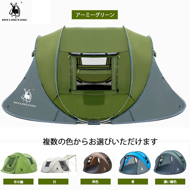 テント ワンタッチテント キャンプ 設営簡単 ツーリングテント テントベット カンプライト 防風 防水 軽量 釣り 登山 3-4人用 hw576