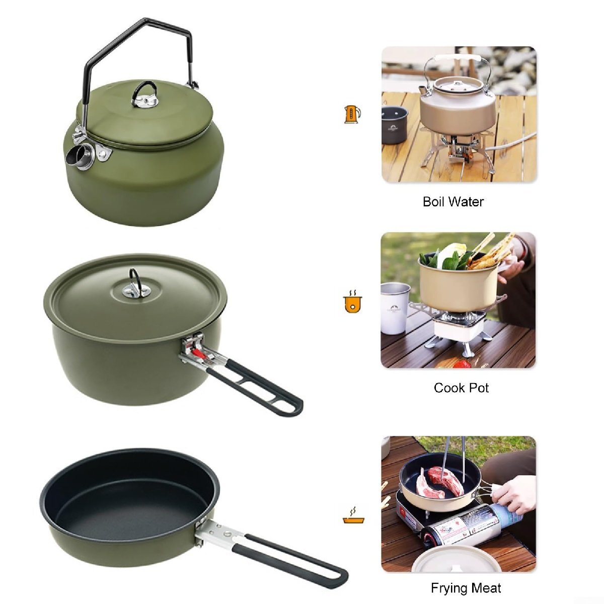 キャンプ 調理器具セット 食器 折畳み式 クッカー セット キャンプ セットアウトドア調理器具 キャンピング鍋 152gr 2-3人(グリーン)