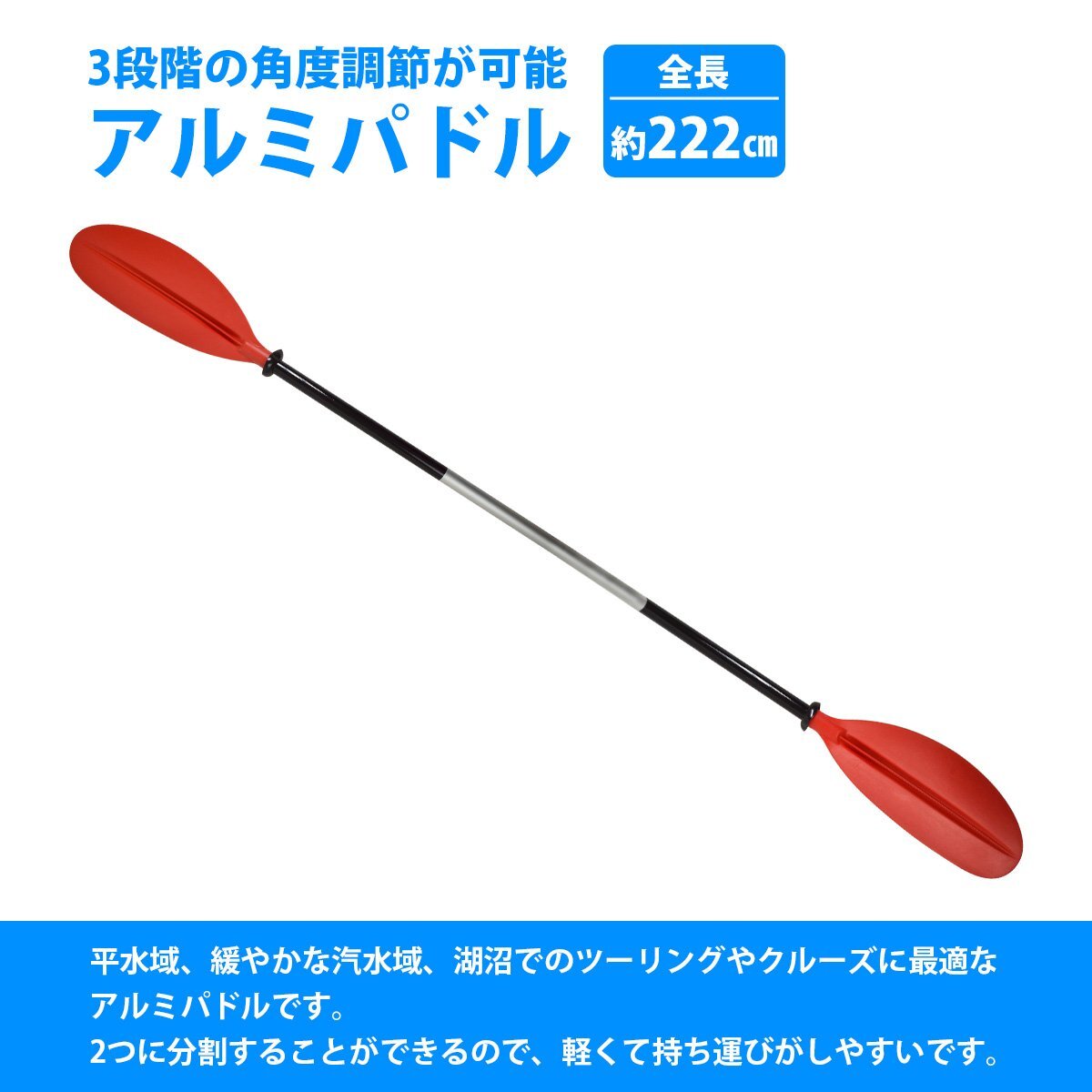 『全長222cm』3段階の角度調整が可能 カヤック パドル 『赤/レッド』ボート ゴムボート カヌー アルミ製 オール 海 川 湖 池