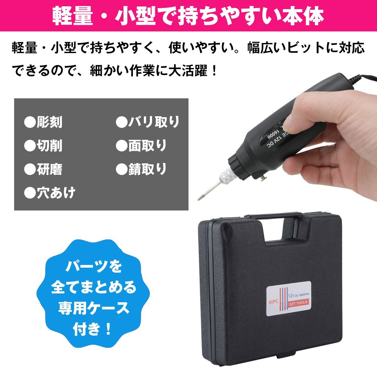 電動 ホビー ルーター 高速12000回転 60点セット 小型 マルチ グラインダー ハンド リューター ケース付 研磨 彫刻 バリ取り