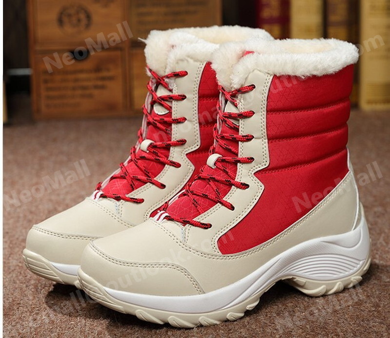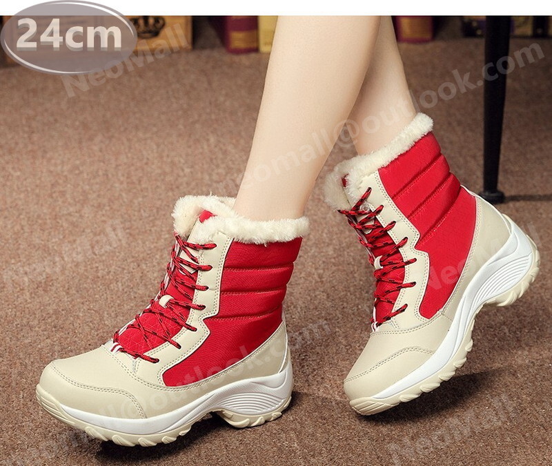 レディース スノーシューズ 【968】 レッド 24.0cm ムートンブーツ スニーカー ウィンターブーツ 裏起毛 防水 防寒 防滑 冬用靴 綿靴