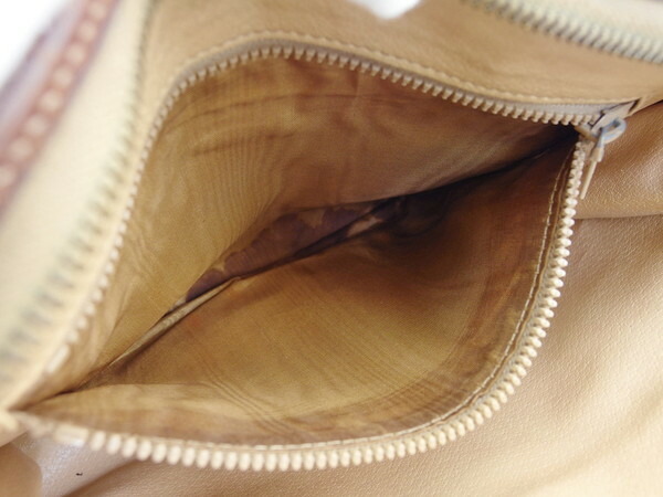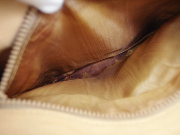 | コンディション | 全体の状態詳細:使用感はありますが、ご使用いただけます。社外リペア跡(パイピング劣化補修・補強)あり。外側:レザー(汚れ、黒ずみ、傷、パイピング部分に劣化&切れ6箇所)、PVC(傷、汚れ、しみ汚れ、ペン跡黒)、ファスナー金具(くすみ、メッキハゲ)あり。内側:レザー(汚れ、黒ずみ)、ファスナー金具(コーティングハゲ)、ファスナーポケット内(底部分にしみ汚れ大)あり。その他、目立たない傷・汚れ などの一般的使用感がございます。 |