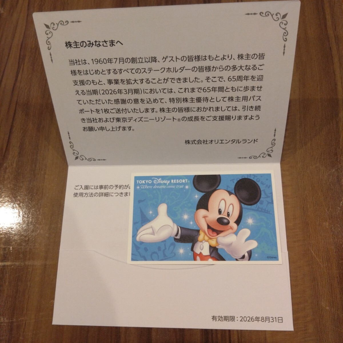 オリエンタルランド 特別株主優待 東京ディズニーリゾート チケット 株主用パスポートです。