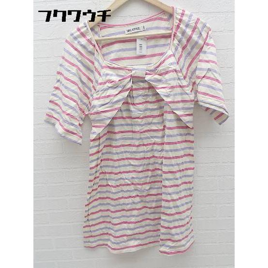 ◇ MILKFED. ミルクフェド ボーダー柄 半袖 ミニ ワンピース サイズXS ベージュ ピンク パープル レディース