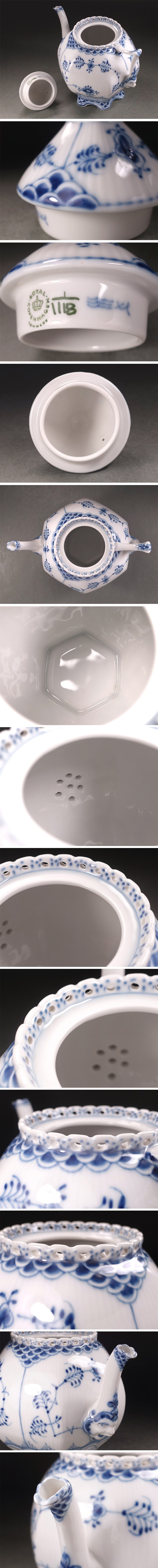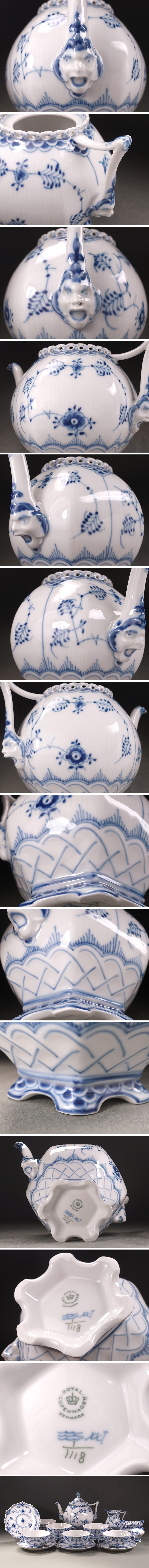 ∇花∇北欧【ロイヤルコペンハーゲン】 ブルーフルーテッド フルレース ティーセット15点 カップ&ソーサー・シュガー・クリーマー・ポット