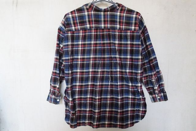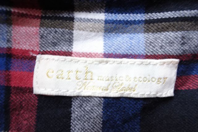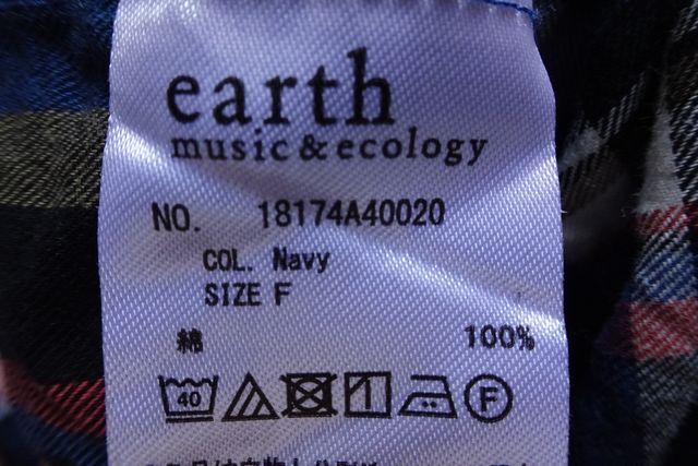 earth music&ecology/アースミュージック&エコロジー/長袖シャツ/チュニック/チェック柄/スキッパー襟/紺系/ネイビー/フリーサイズ(5/13R7)