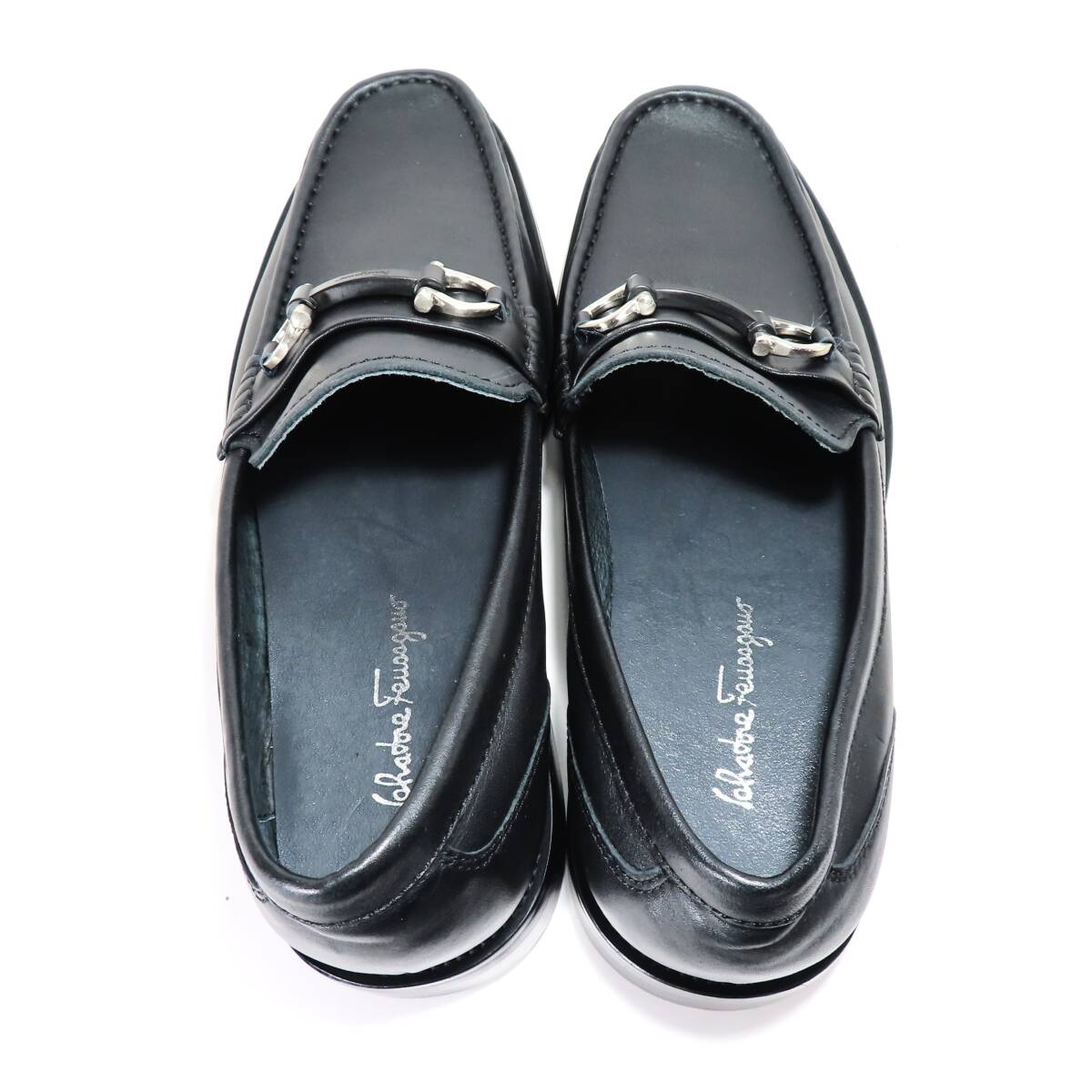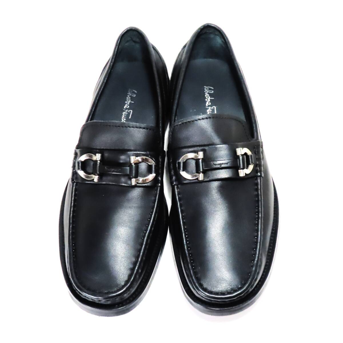 美品 SALVATORE FERRAGAMO サルヴァトーレ フェラガモ ガンチーニ ローファー 革靴 38 25cm相当 メンズ ブラック 黒