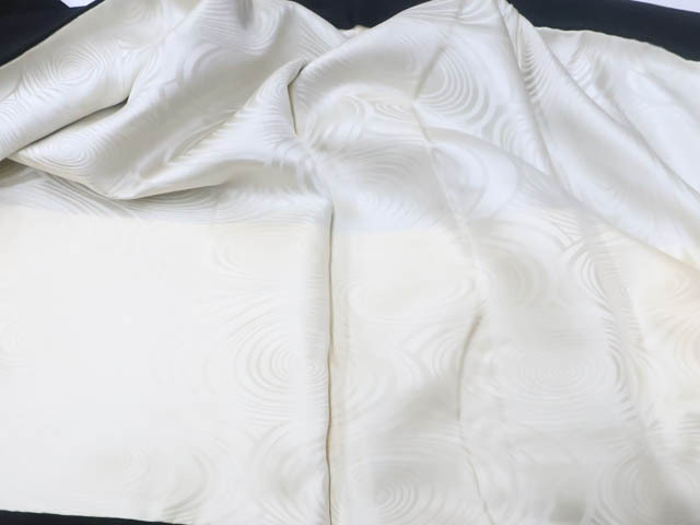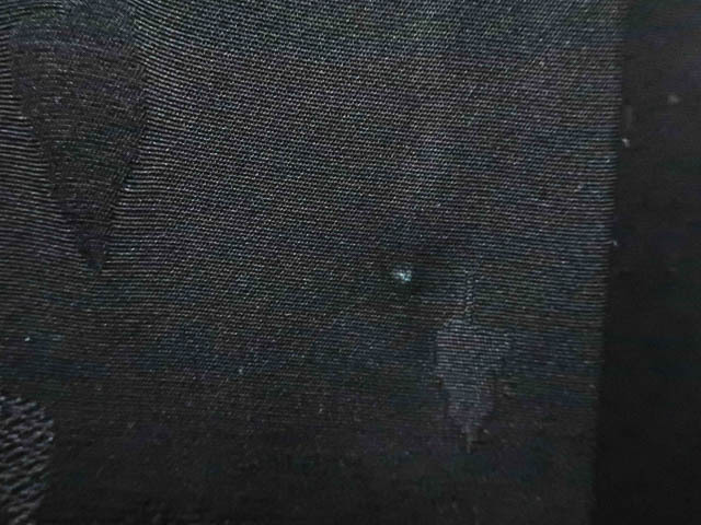 リサイクル商品のため、左背に小さな薄汚れがございますが着用可能なお品です。 地色は 黒です。 1枚目の画像が近いお色かと思われます。 素材は正絹です。 |