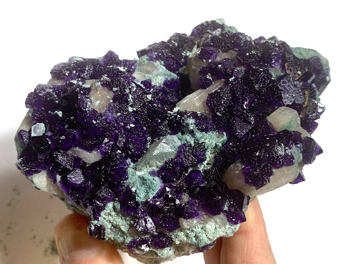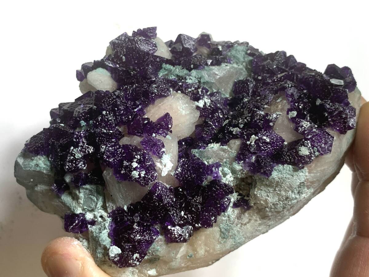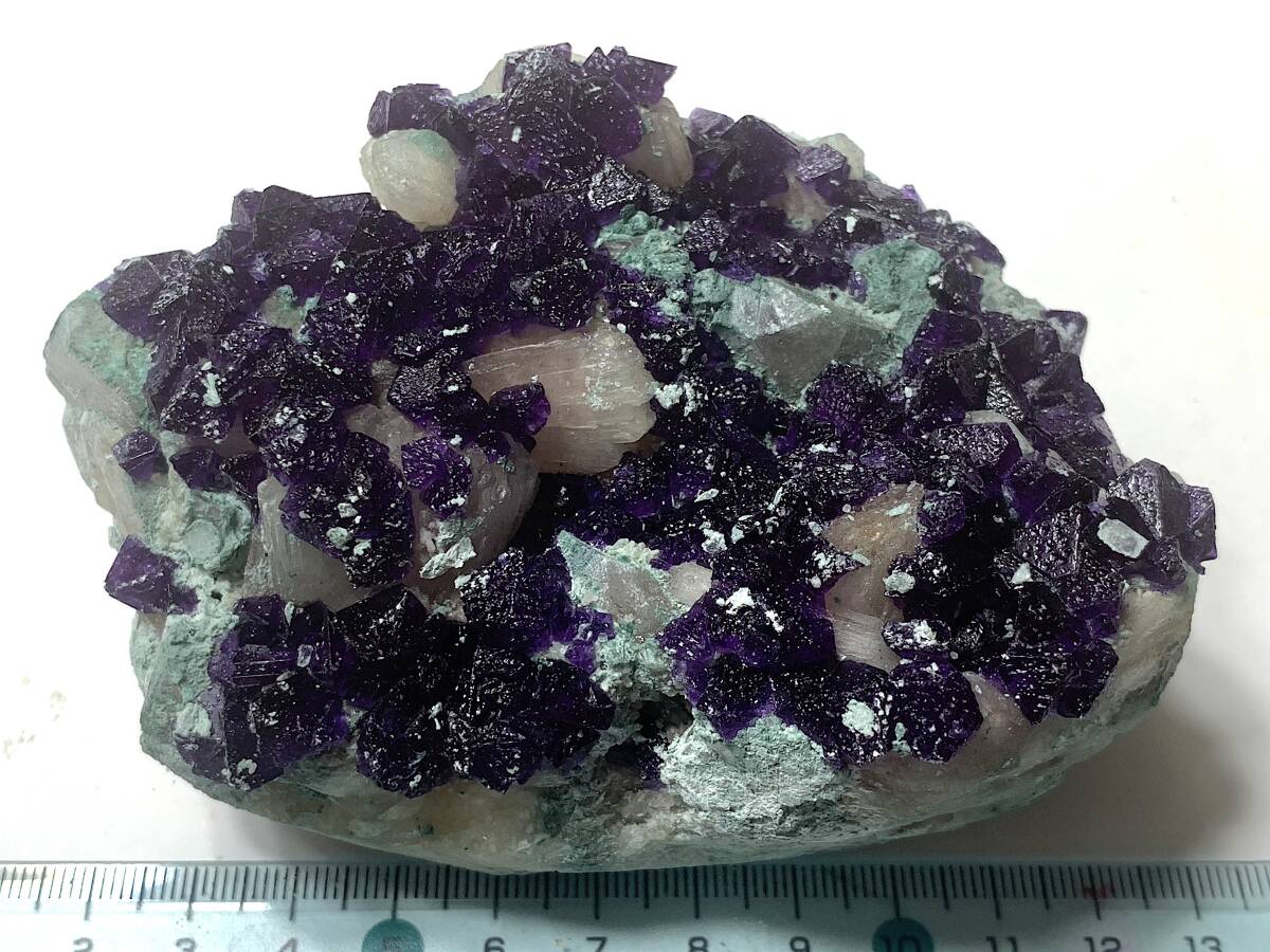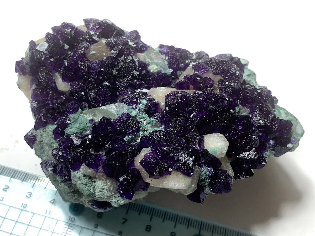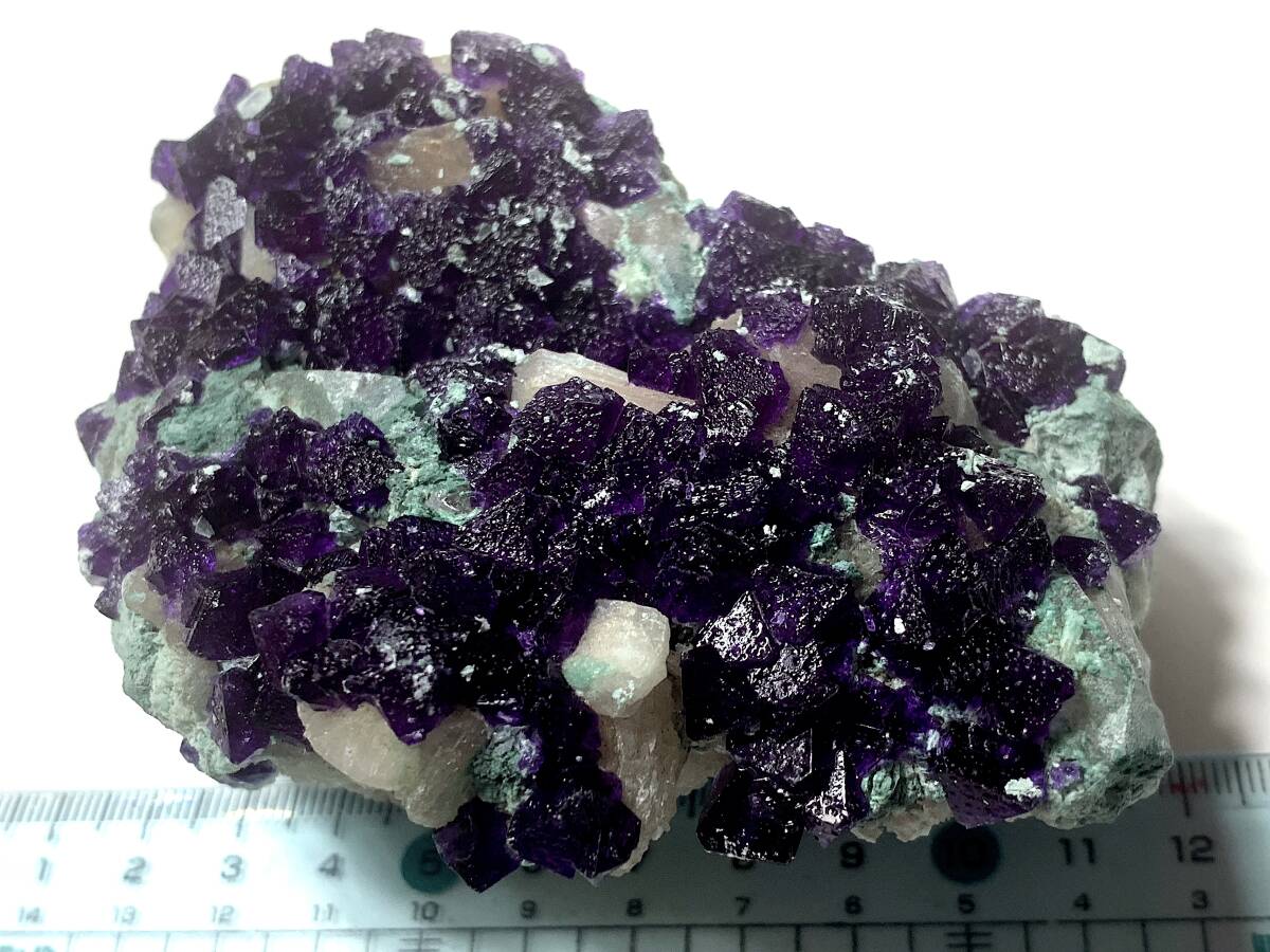 【商品の説明】 産地:中華人民共和国(産地の詳細は不明) サイズ:写真に写り込んだメジャーで推測してください。 重量:商品名に記載 非常にもろい標本で、厳重に梱包してゆうパック限定でお送りしますが、それでも蛍石の破片が幾つか落ちて届くと思われます。入札に際しては、その旨ご承知おきください。