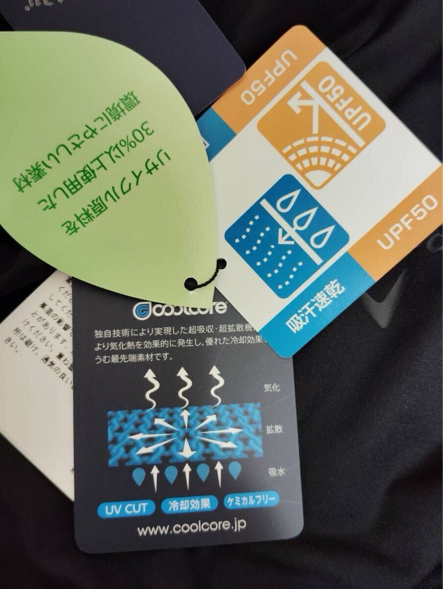 ■吸汗速乾性、UPF50 ■クールコア 超吸収、超拡散、冷却効果 ■リサイクル繊維を30%以上使用した素材