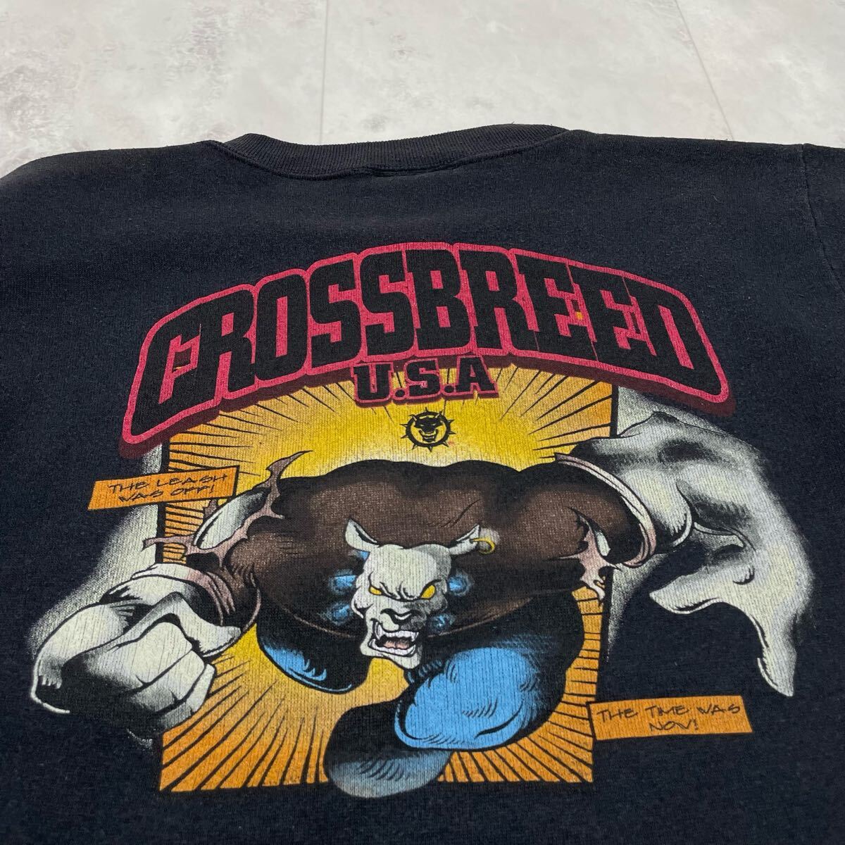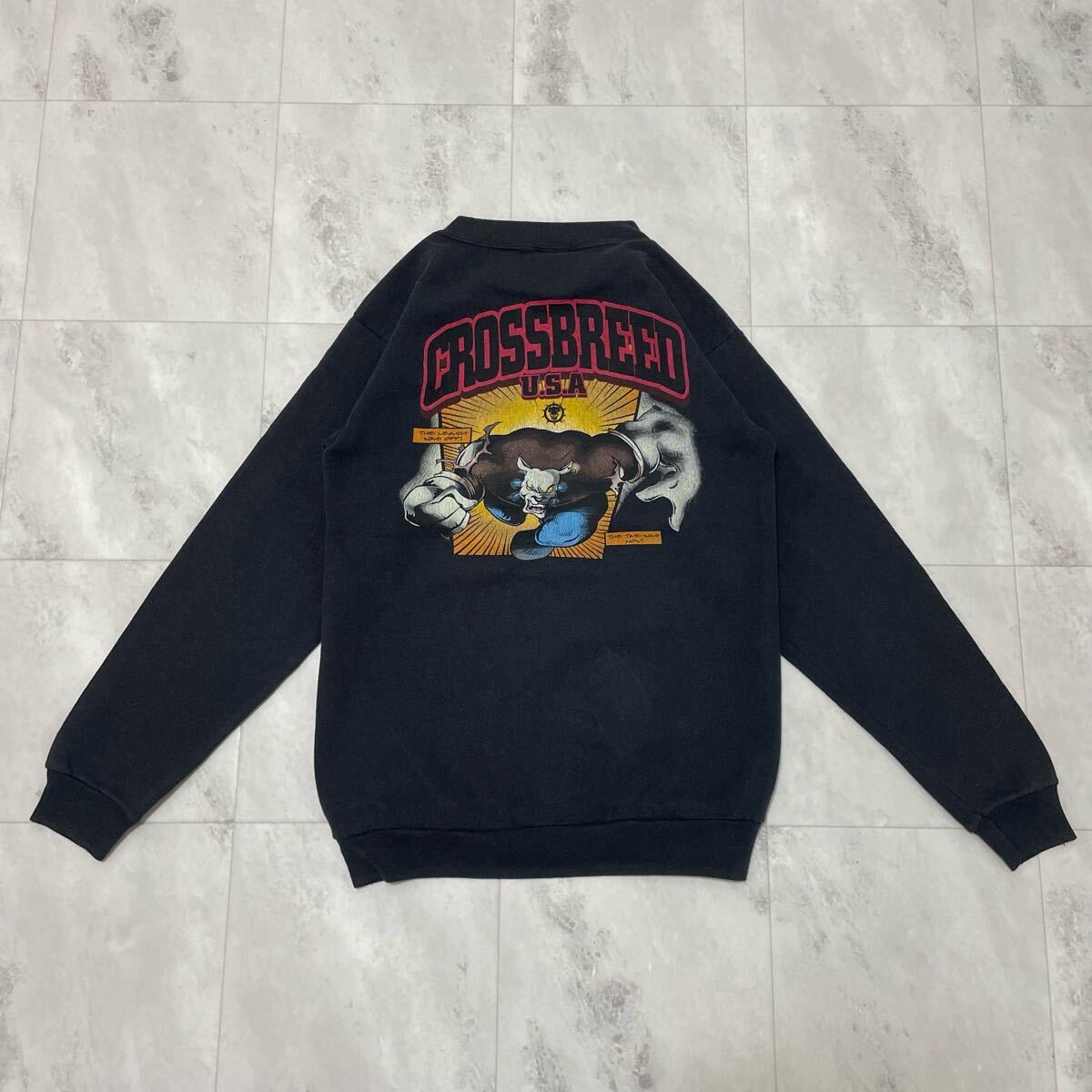 CROSS BREED クロスブリード sweat スウェット トレーナー プリント 90s ヴィンテージ USA企画 ブラック サイズS相当 玉FL4042