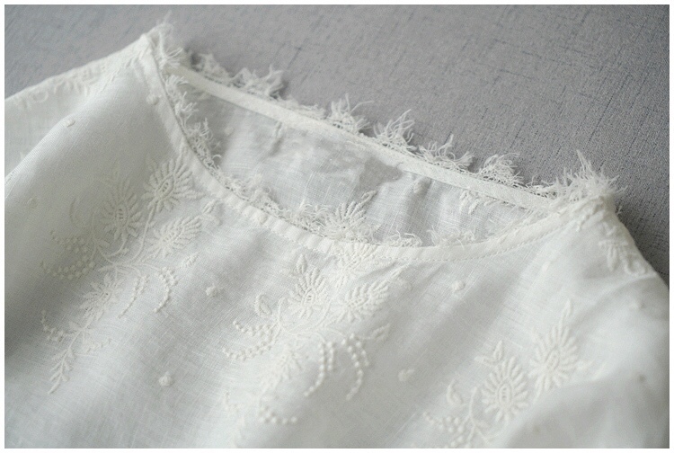 柔らかいリネン100%全体に上品スカラップ刺繍し、