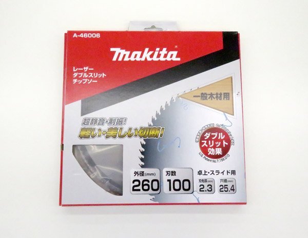 送料無料 未使用 makita/マキタ レーザーダブルスリットチップソー A-46006 一般木材用 卓上 スライド用 外径260mm 刃数100 |