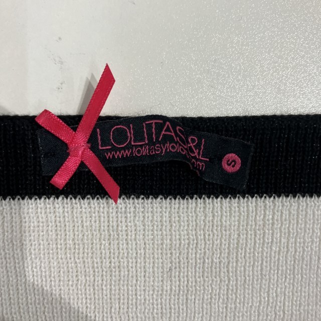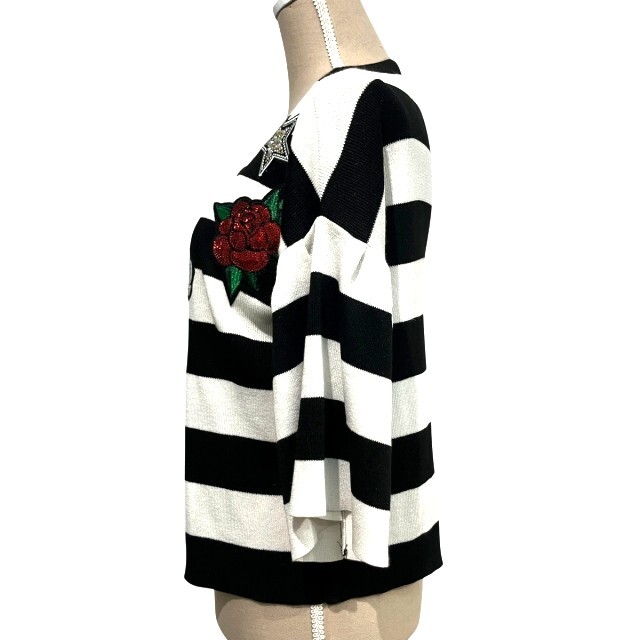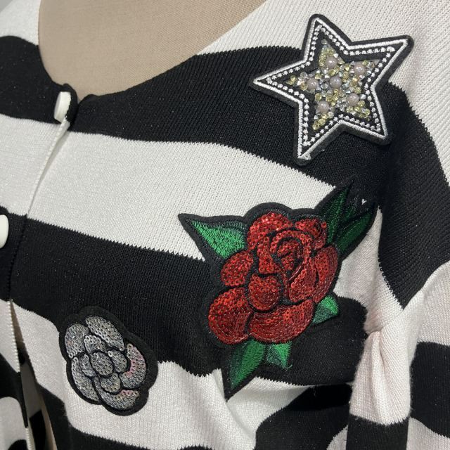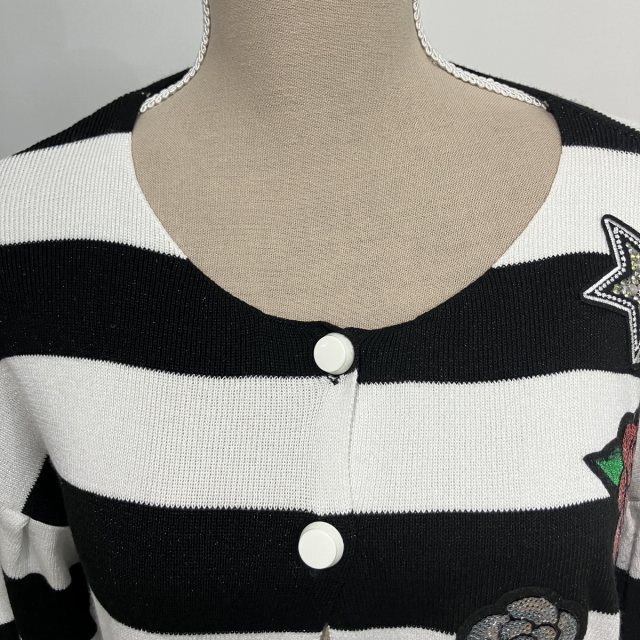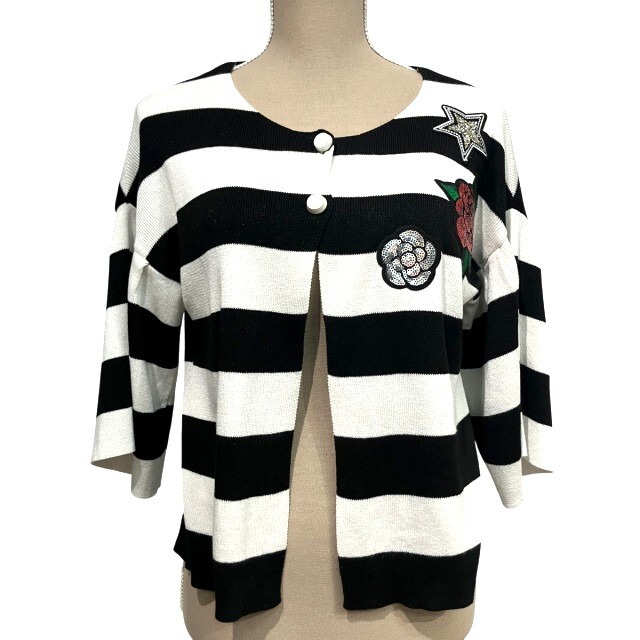 ロリタスアンドロロス LOLITAS&L 美品 カーディガン ニット セーター ボーダー スパンコール バラ 黒 ブラック 白 ホワイト S レディース