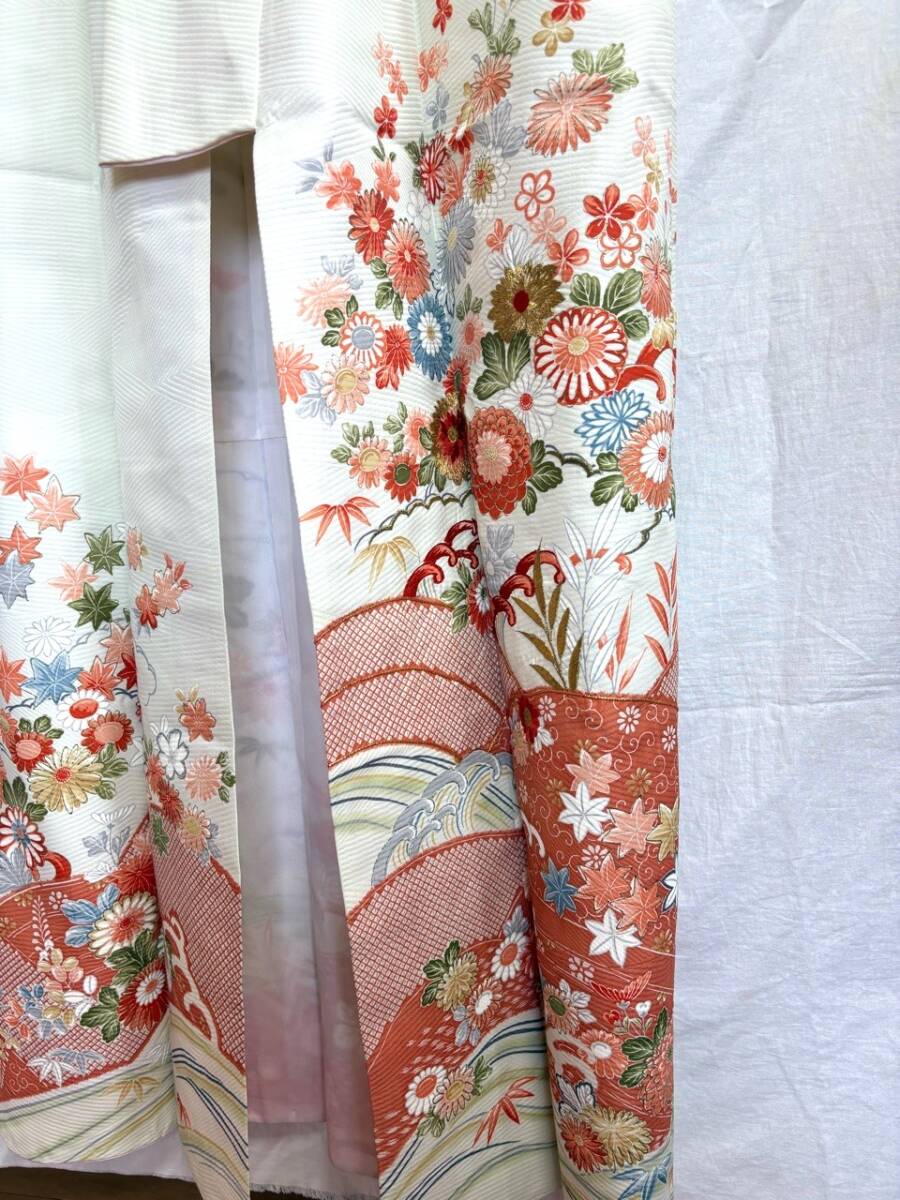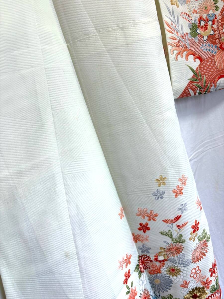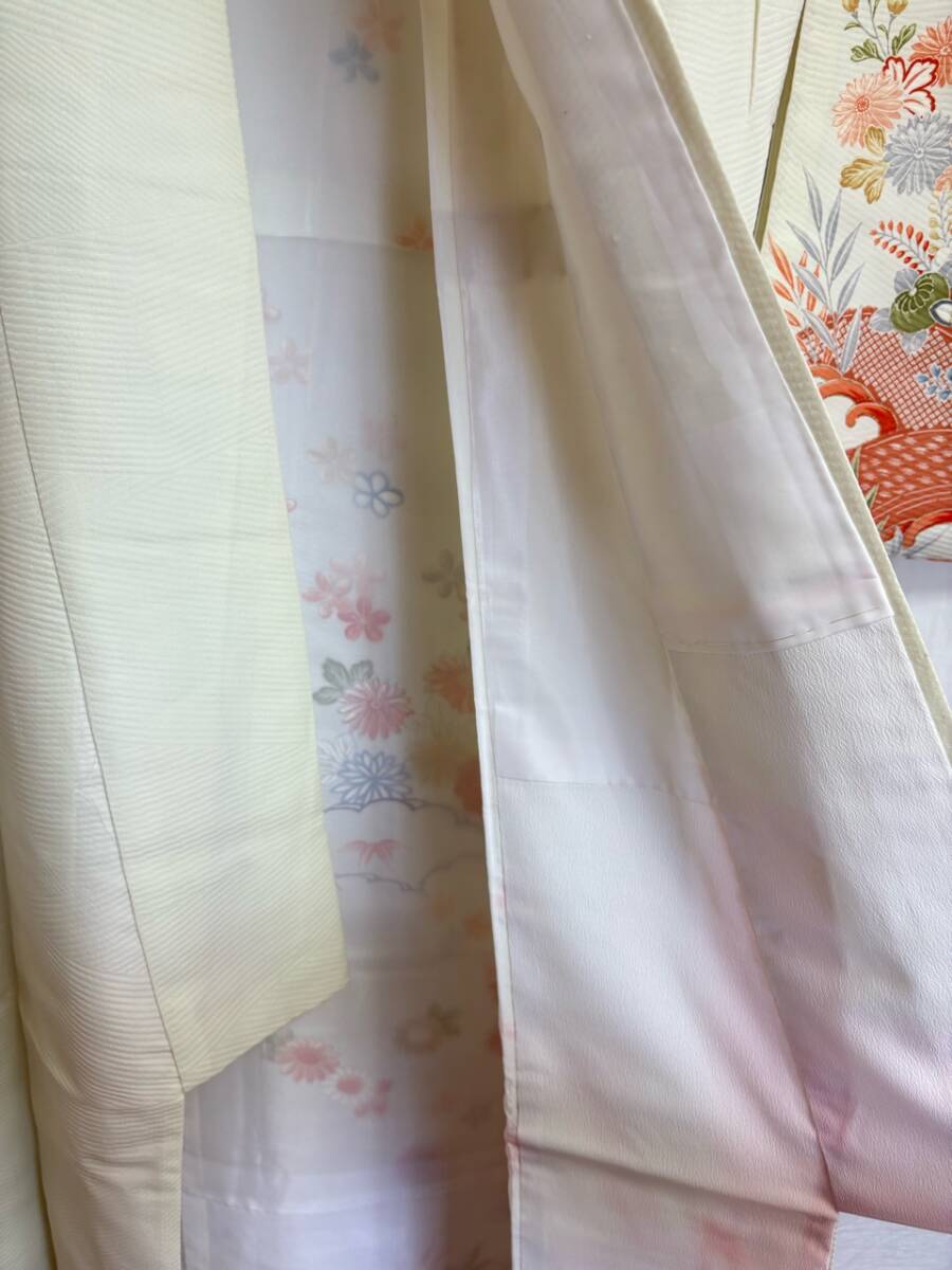 0029★着物*白*オフホワイト*花*柄*身丈157cm*和装*和服*和柄*モダン*レトロ*アンティーク*女性*レディース*お得★