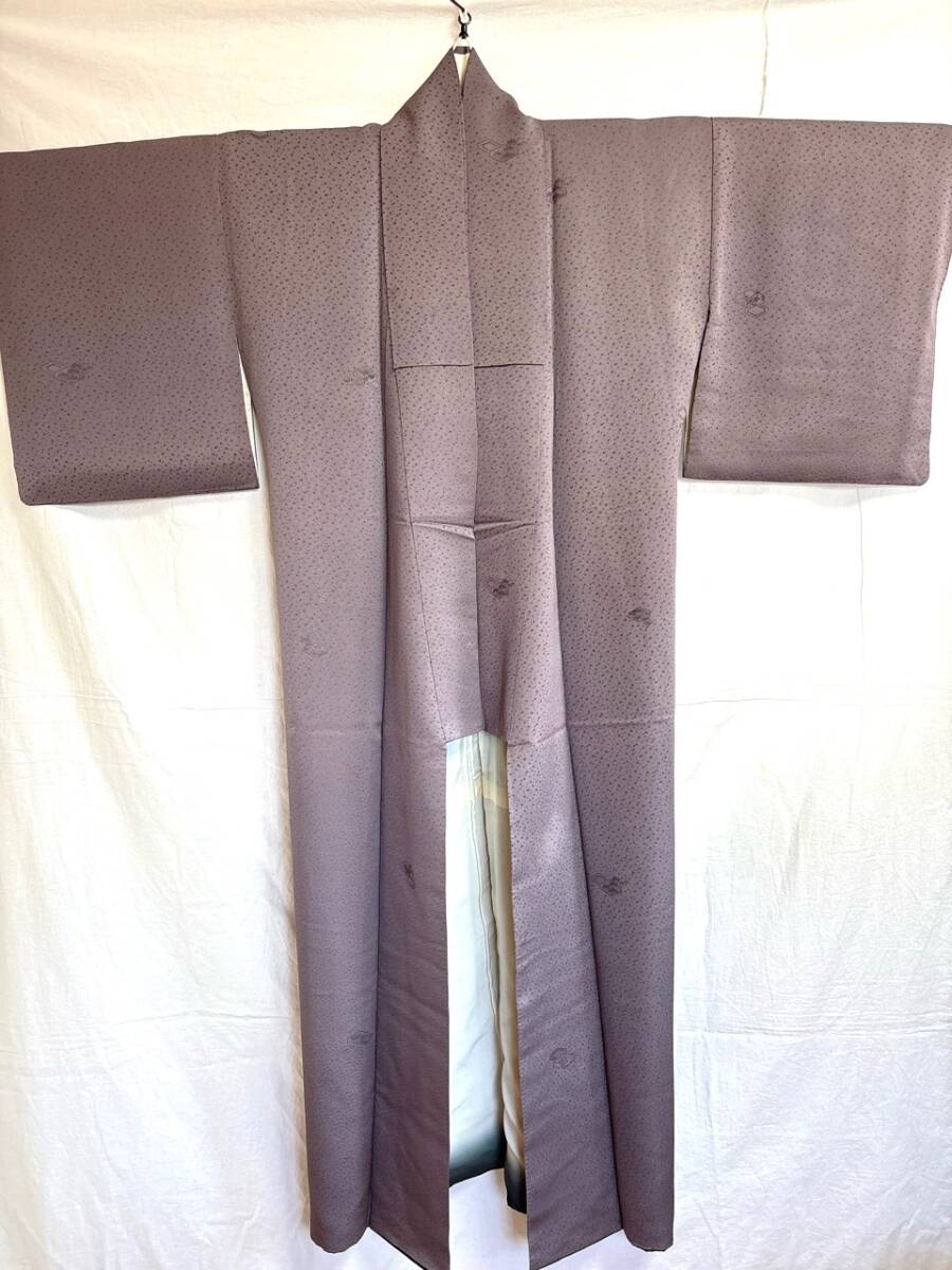 0006★着物*藤色*ラベンダー*柄*身丈142cm*和装*和服*和柄*モダン*レトロ*アンティーク*女性*レディース*お得★