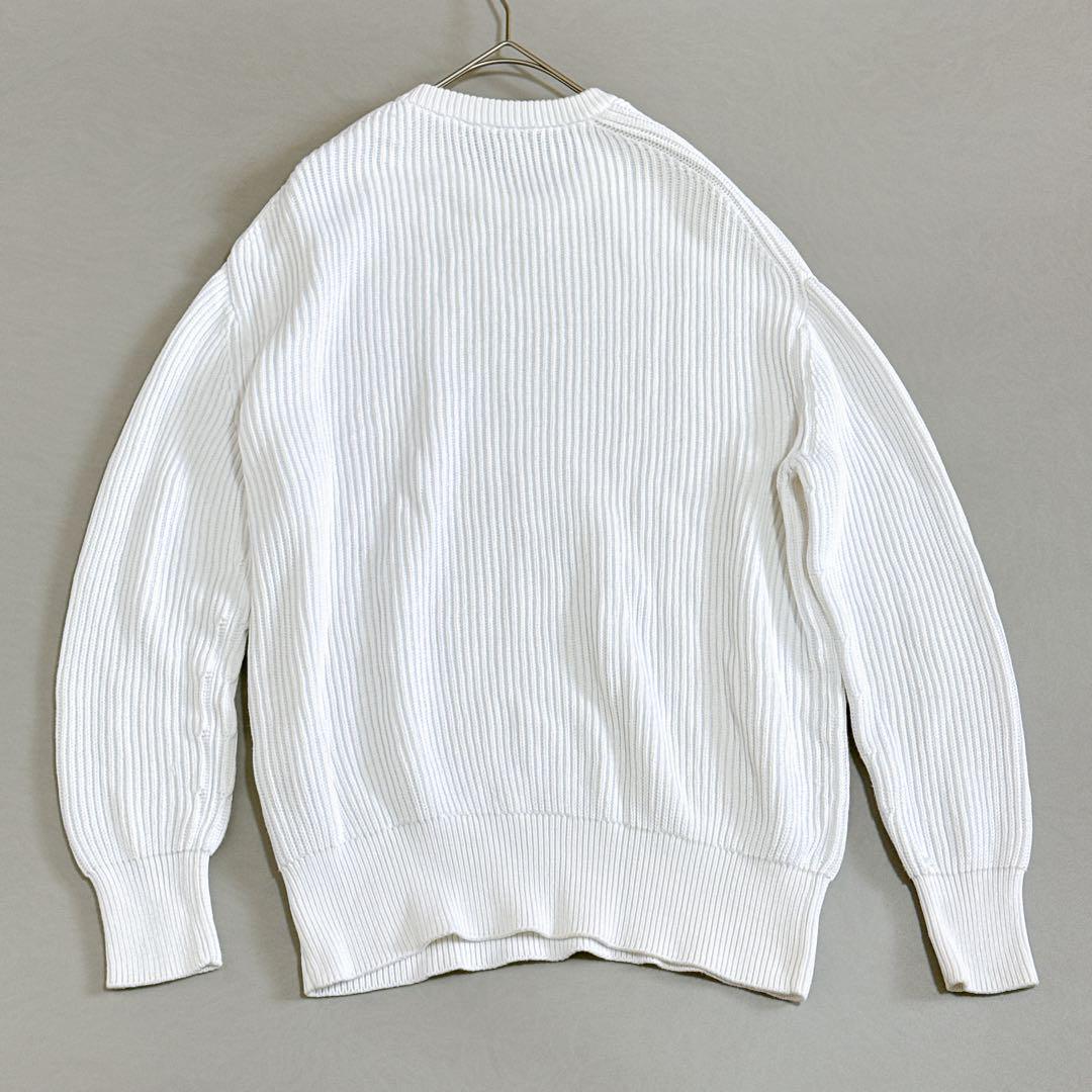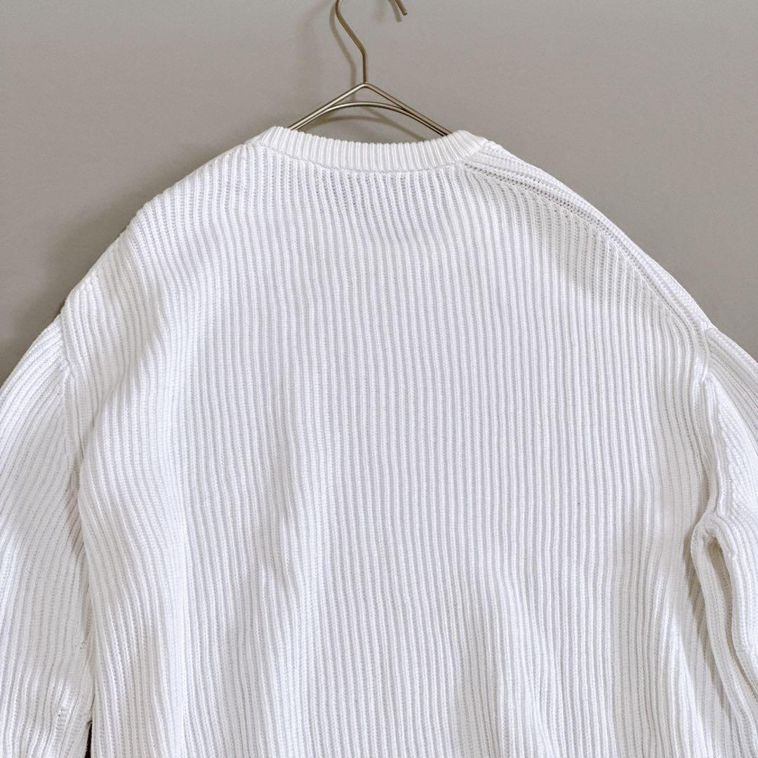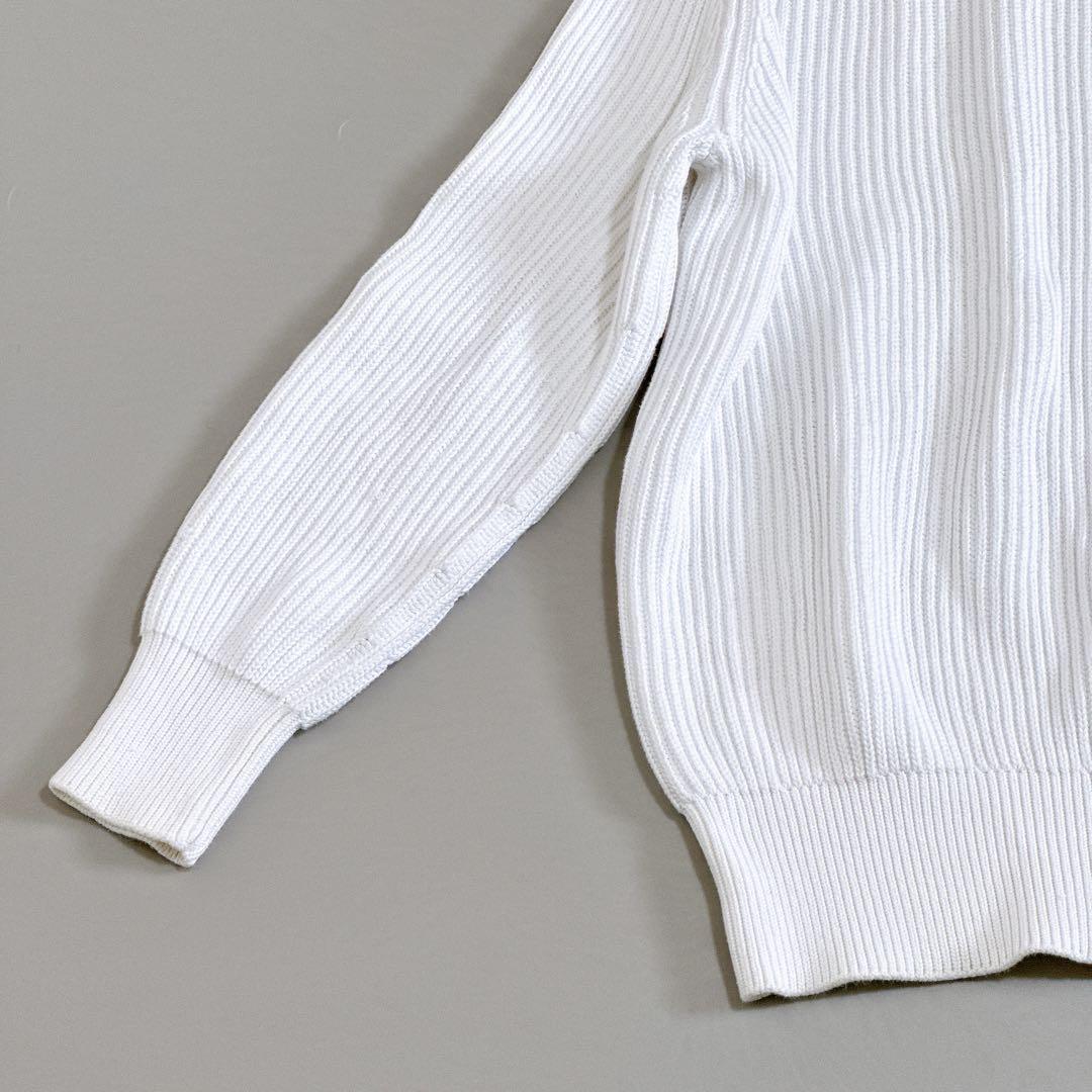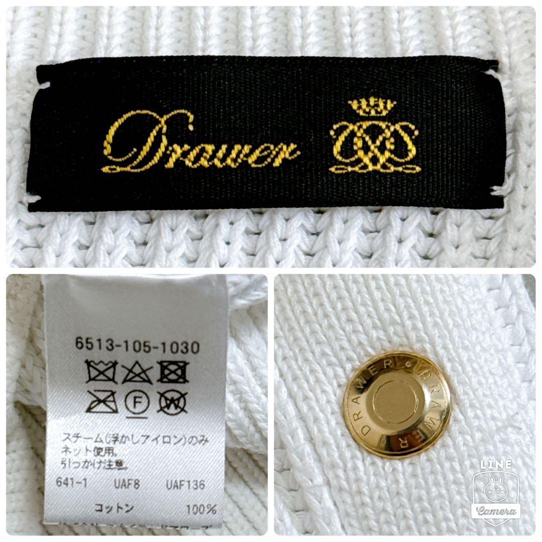 ドゥロワー DRAWER スナップボタン ゴールド金具 クルーネック 白ニット 畔編み コットン 春服 長袖ニット レディース トップス カジュアル 上品 きれいめ