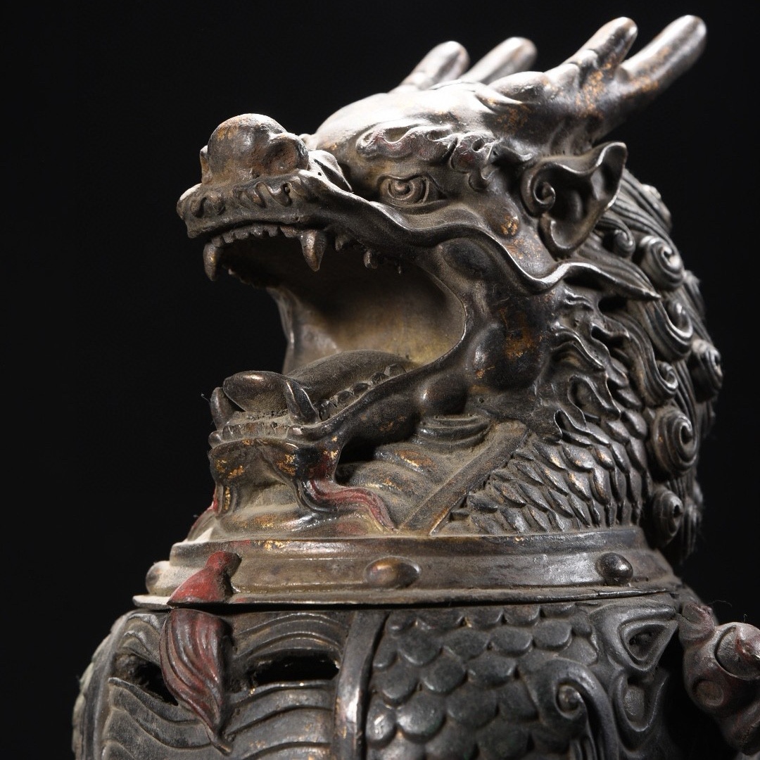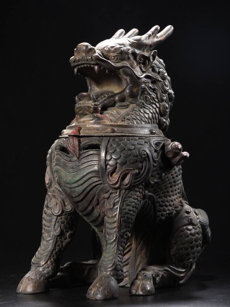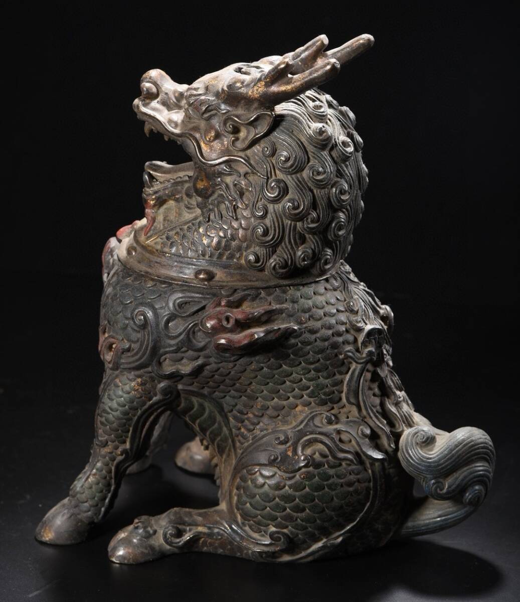 *珍品旧蔵* 明 宣德年製 銅泥金 彩繪 麒麟 熏香炉 香道具 銅製品 銅器 極細工 唐物 中国古玩 骨董品 古美味 H45