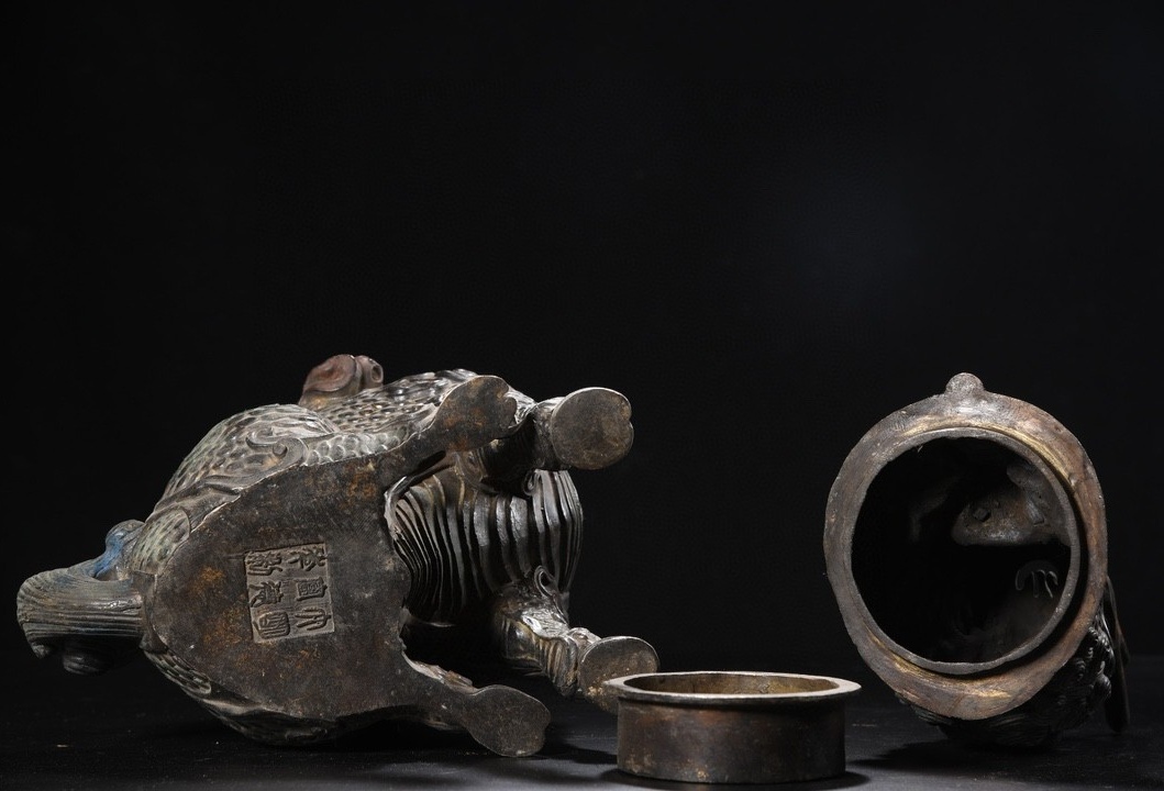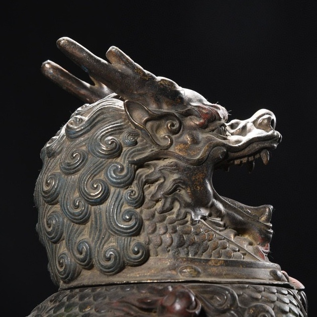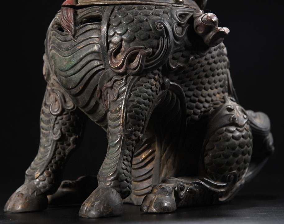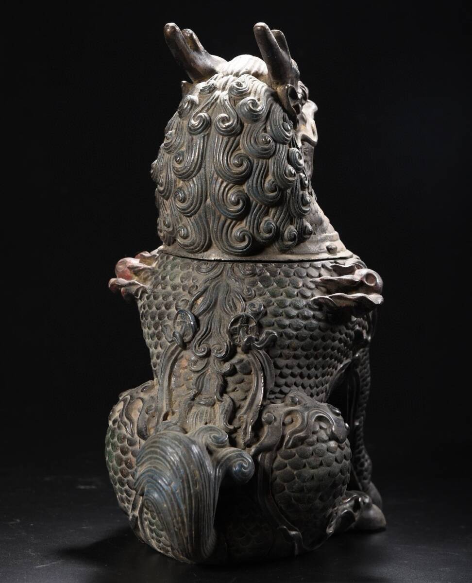 *珍品旧蔵* 明 宣德年製 銅泥金 彩繪 麒麟 熏香炉 香道具 銅製品 銅器 極細工 唐物 中国古玩 骨董品 古美味 H45