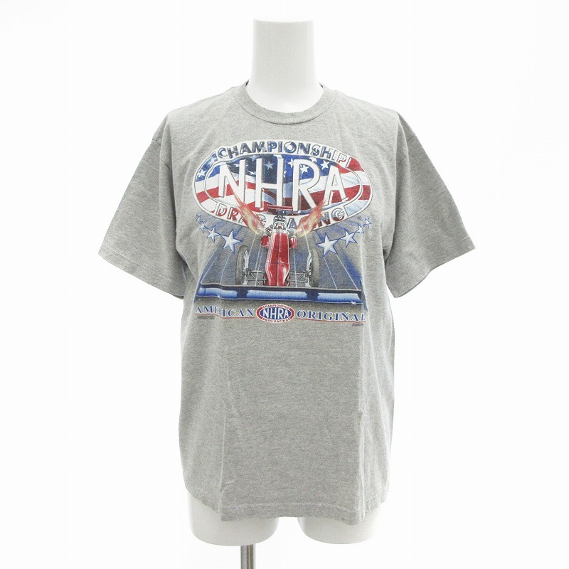 ジャージーズ JERZEES 90s 00s 美品 Tシャツ カットソー ドラッグレース NHRA 半袖 L グレー /AE レディース