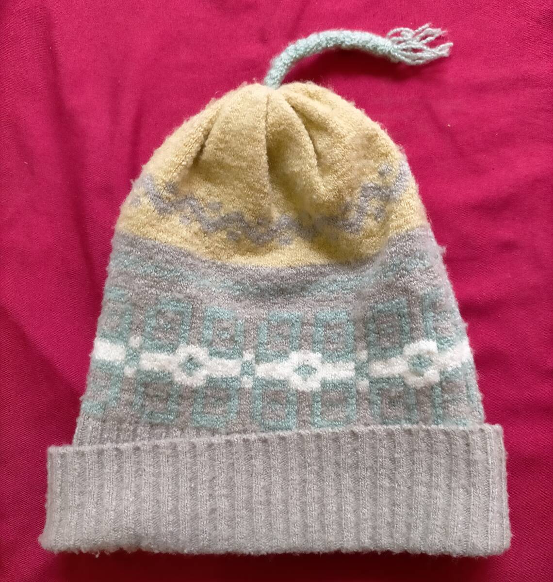 ②メーカー不明 ベビー用ニット帽子 グレー 白 ベージュ