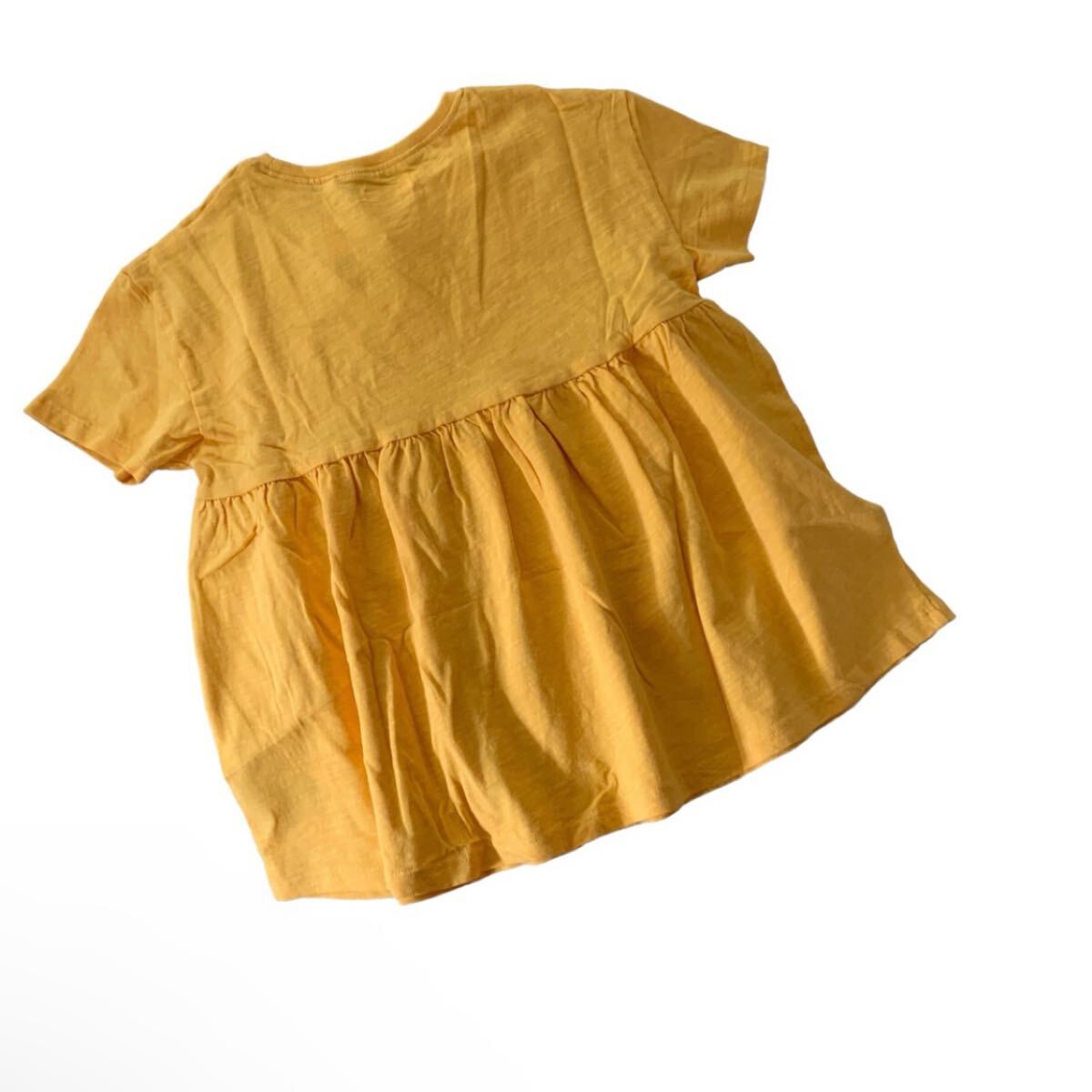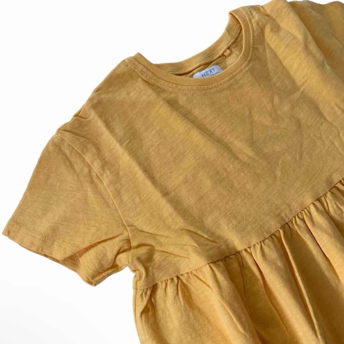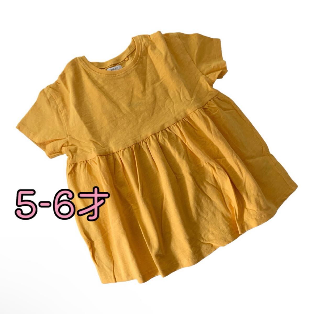 無地オレンジの暑い日にも脱ぎ着しやすい身幅ゆったり目のペプラムトップス