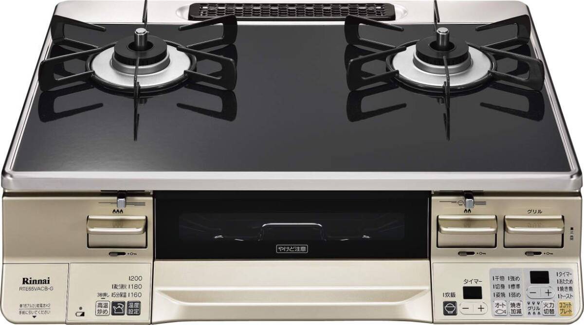 【中古】リンナイ「LAKUCIE」 ココットプレート付 パールクリスタルトップ 左強火力 プロパンRTE65VACB-GL/LP ブラック/シャンパ