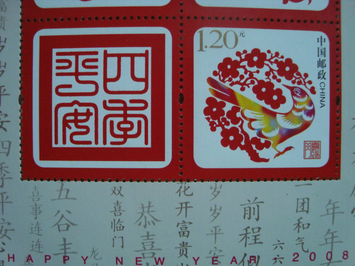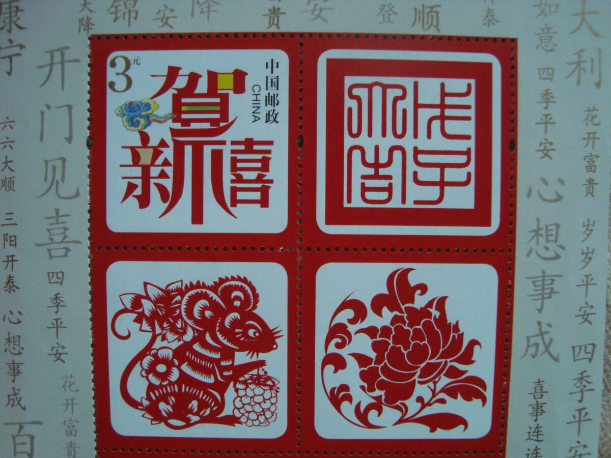 中国切手 お正月用 6枚 小型シート 縁起物 未使用品