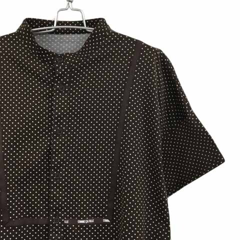 コムサフィユ COMME CA FILLE シャツ カットソー バンドカラー ロゴ ドット 総柄 半袖 140 150 茶 白 ブラウン ホワイト キッズ